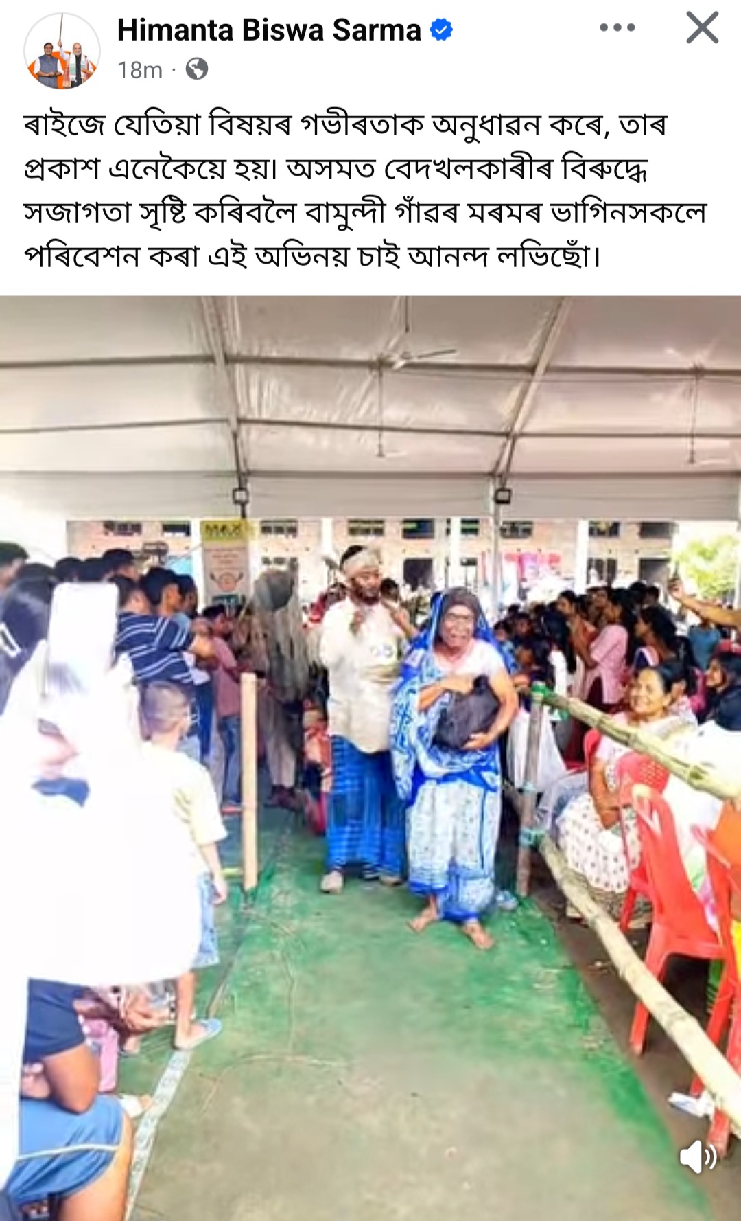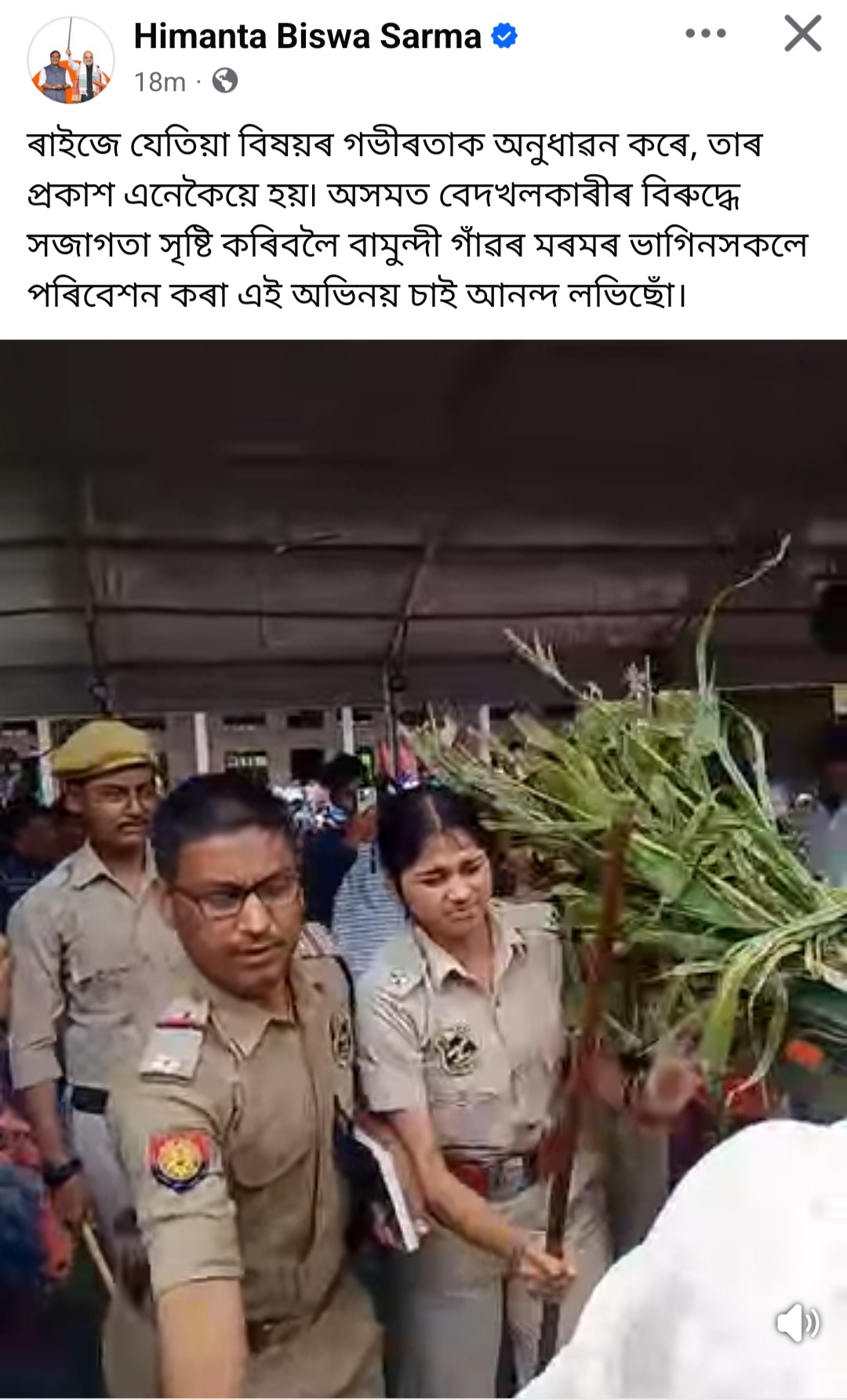 ​অসমৰ মুখ্যমন্ত্ৰী ড° হিমন্ত বিশ্ব শৰ্মাৰ শেহতীয়া ফেচবুক পোষ্টটো (ফটোত সংলগ্ন) দেখি অত্যন্ত ব্যথিত আৰু স্তম্ভিত হৈছোঁ। ৰাজ্যৰ এজন শীৰ্ষ জনপ্ৰতিনিধিয়ে কোনো বিশেষ গোষ্ঠী বা সম্প্ৰদায়ক লৈ কৰা এনে ধৰণৰ উপলুঙা আৰু নিম্ন ৰুচিৰ প্ৰদৰ্শনক সমৰ্থন কৰাটো অতি দুৰ্ভাগ্যজনক।