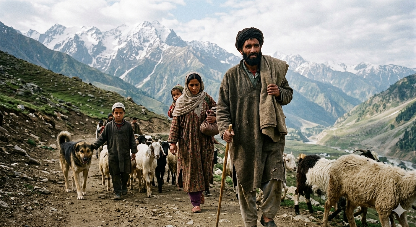 Traditionally, the Jammu and Kashmir government provided transportation facilities to assist these nomadic tribes in moving their livestock between the highland pastures and the plains. However, the suspension of these services has forced the community to undertake the grueling journey on foot.