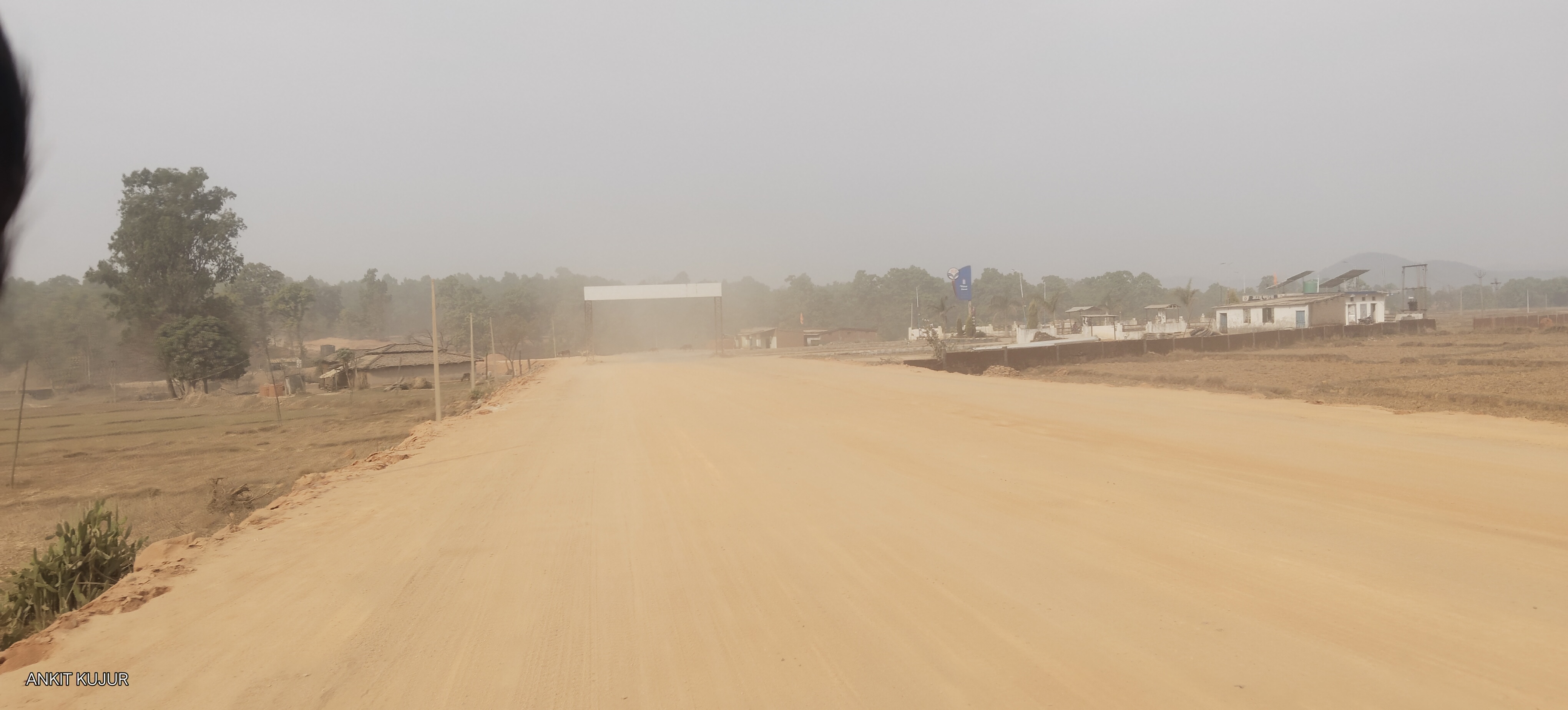 सड़क पर डामर नहीं, सिर्फ धूल और गिट्टी