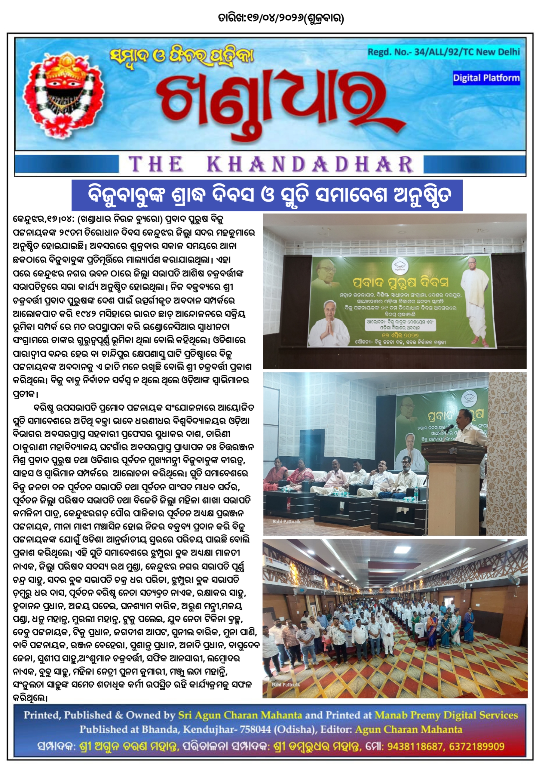ବିଜୁବାବୁଙ୍କ ଶ୍ରାଦ୍ଧ ଦିବସ ଓ ସ୍ମୃତି ସମାବେଶ ଅନୁଷ୍ଠିତ।
