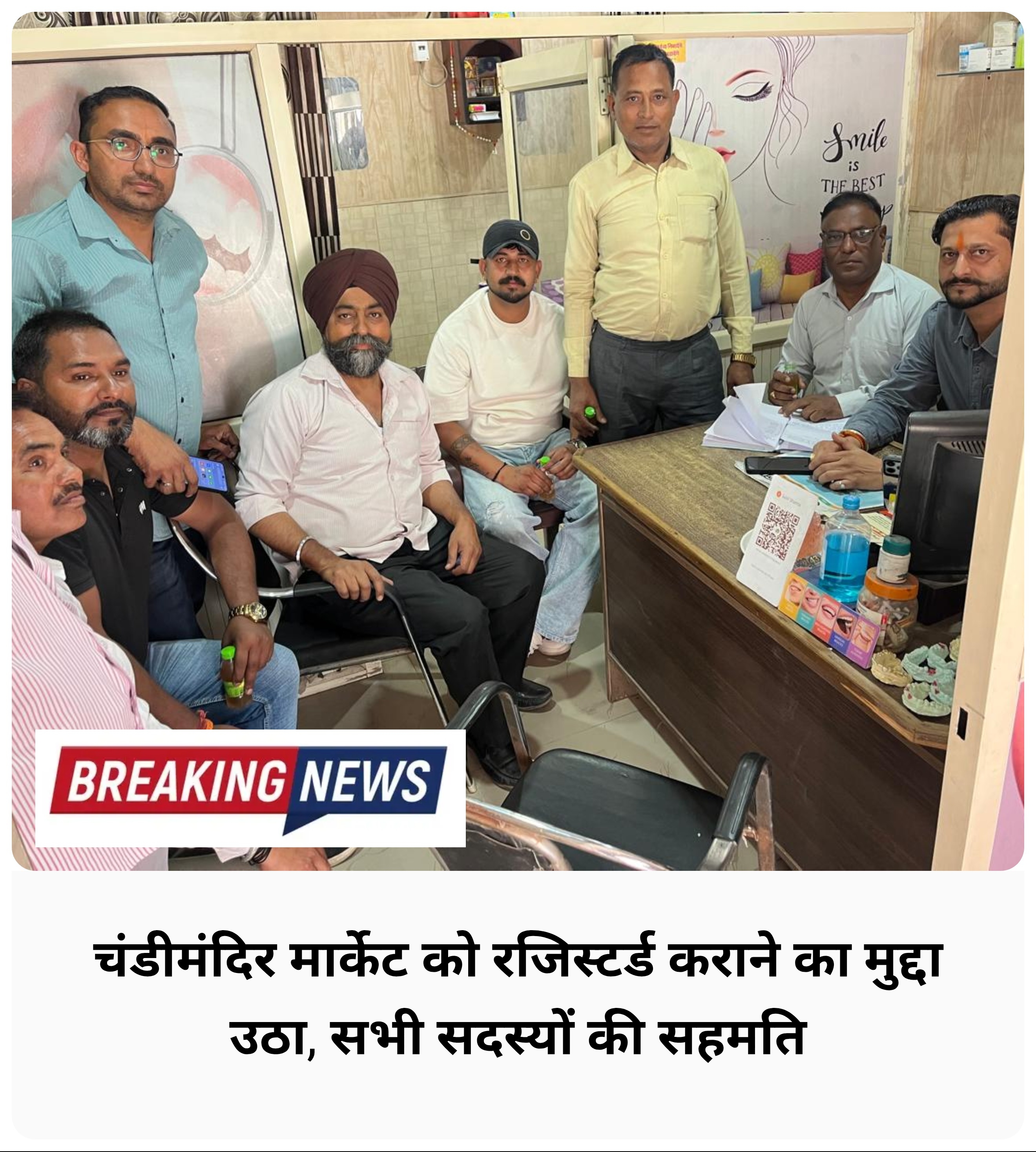 पंचकूला/चंडीमंदिर। चंडीमंदिर मार्केट कमेटी की बैठक प्रधान सुनील शर्मा के नेतृत्व में आयोजित हुई, जिसमें मार्केट को आधिकारिक रूप से रजिस्टर्ड कराने का महत्वपूर्ण मुद्दा उठाया गया। इस प्रस्ताव पर मौजूद सभी सदस्यों ने एकमत होकर सहमति जताई।
