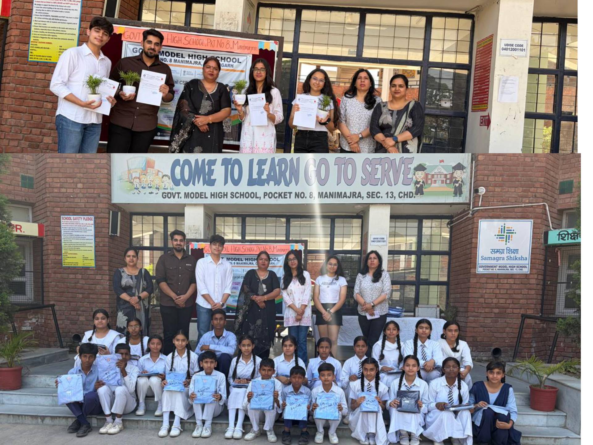 मनोज शर्मा, चंडीगढ़। विद्यांजलि कार्यक्रम के अंतर्गत गवर्नमेंट मॉडल हाई स्कूल, पॉकेट नंबर-8 में एक प्रेरणादायक आयोजन किया गया। इस अवसर पर चितकारा यूनिवर्सिटी,राजपुरा (पंजाब) के छात्र-छात्राओं प्राची, चिराग भल्ला और कापिश भल्ला ने गत वर्ष के मेधावी विद्यार्थियों को यूनिफॉर्म वितरित कर उनका उत्साहवर्धन किया।