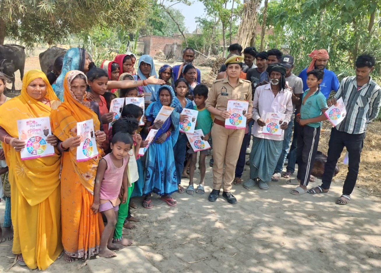 “मिशन शक्ति 5.0” अभियान के द्वितीय चरण अन्तर्गत महिलाओं की सुरक्षा और सशक्तिकरण स्वावलंबन हेतु चलाई जा रही विभिन्न विभागों की योजनाओं जैसे मुख्यमंत्री कन्या सुमंगला योजना, निराश्रित महिला पेंशन योजना, उ०प्र० राज्य ग्रामीण आजीविका मिशन, राष्ट्रीय पोषण योजना, मुख्यमंत्री सामूहिक विवाह योजना, बेटी बचाओ-बेटी पढ़ाओ, प्रधानमंत्री उज्जवला योजना, पी०एम० स्वानिधि योजना, पी०एम० सम्मान निधि योजना, वन स्टाप सेन्टर, आयुष्मान योजना, सुरक्षित मातृत्व आश्वासन सुमन योजना, महिला शक्ति केन्द्र योजना, मुख्यमंत्री अभ्युदय योजना, कन्या सुमंगला योजना तथा पुलिस विभाग से संबंधित विभिन्न हेल्पलाइन नंबरों वीमेन पावर लाइन 1090, पुलिस आपातकालीन सेवा-112 इमरजेन्सी कॉल/पैनिक बटन-मोबाइल पर डेमो, सी०एम० हेल्प लाइन 1076, स्वास्थ्य सेवा हेल्प लाइन-102, एम्बुलेंस सेवा-108, महिला हेल्प लाईन-181, साइबर क्राइम हेल्पलाइन 1930 आदि के बारे मे पंपलेट बांटकर जागरूक किया गया।