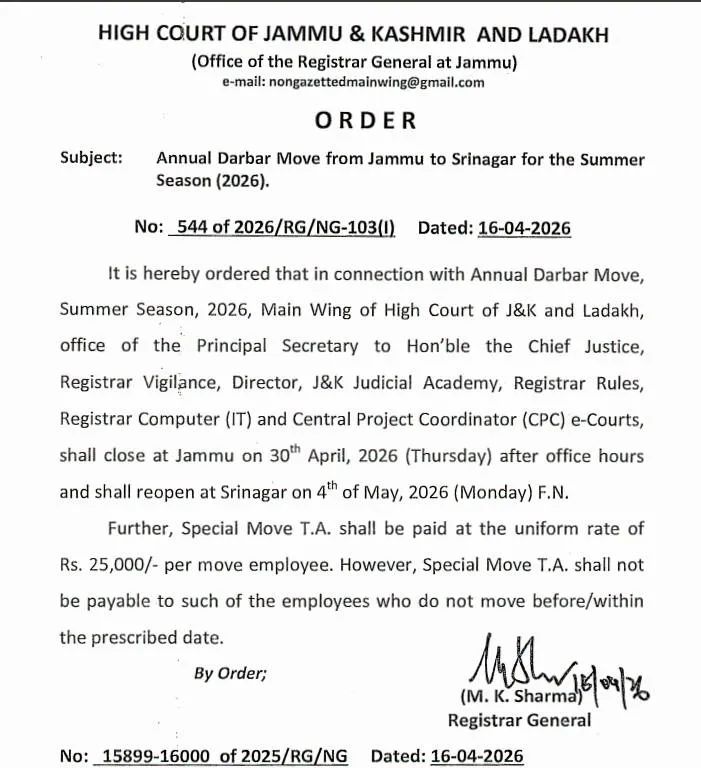 Annual Darbar Move from Jammu to Srinagar for the summer season 2026