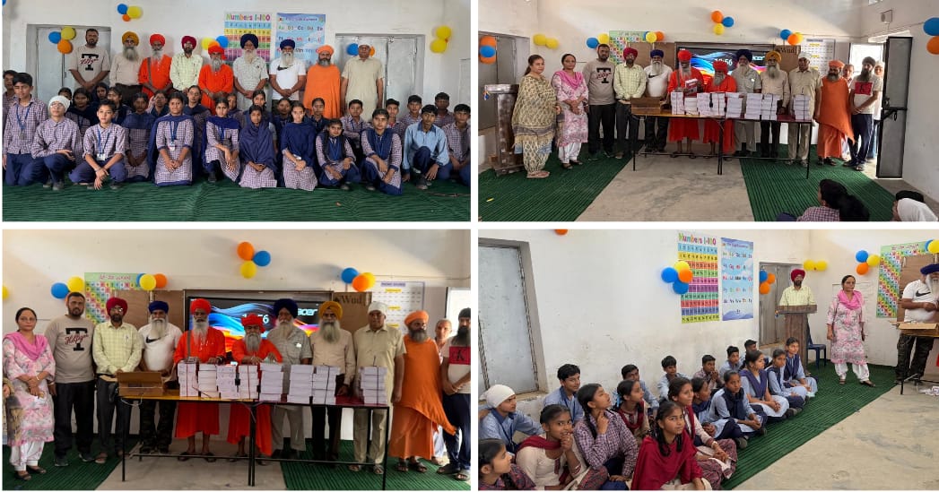 Distributed copies to students of both village schools/Baba Makhhan Singh and Baba Balbir Singh Shastri