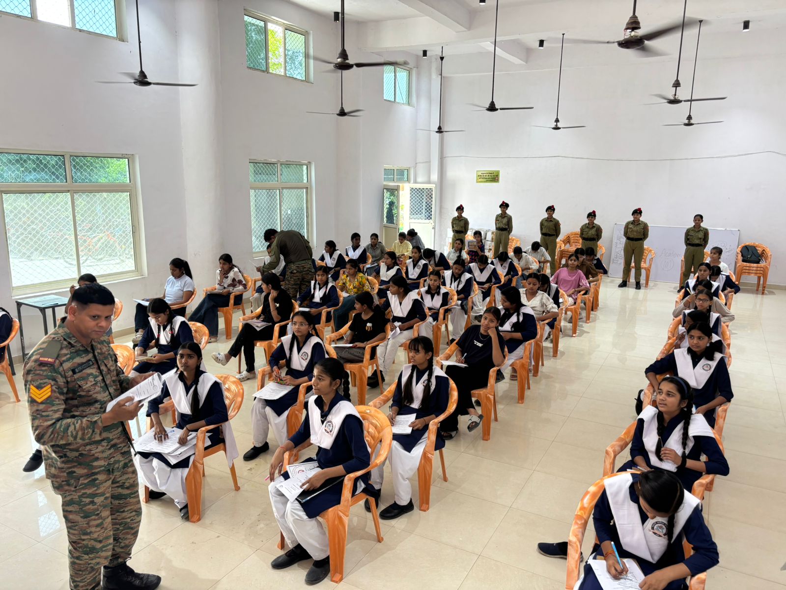 यह परीक्षा प्रथम वर्ष की बालिका कैडेट्स की रिक्त स्थान 29 के सापेक्ष आयोजित की गई जिसमे विद्यालय की 70 छात्राएं सम्मिलित हुई।