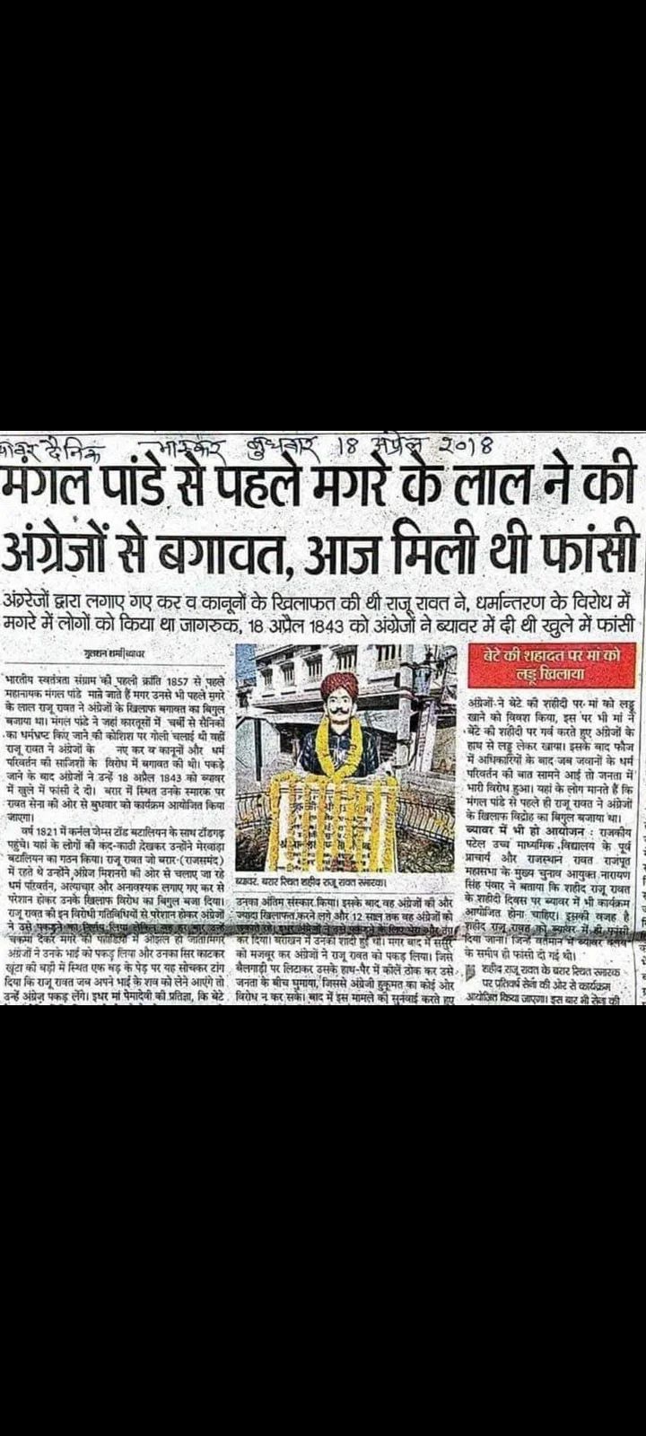 राजू रावत आज के दिन अग्रेजों से बगावत करने पर ब्यावर मे अंग्रेजों ने खुले आम फासी दी गई थी!