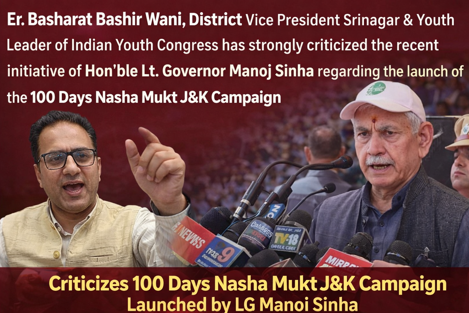 Er. Basharat Bashir Wani, District Vice President Srinagar and Youth Leader of the Indian Youth Congress criticized the recent initiative on Drugs.