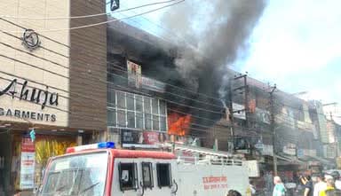 शारदा रोड पर कपड़े की दुकान में भीषण आग कई दुकानें चपेट में आईं