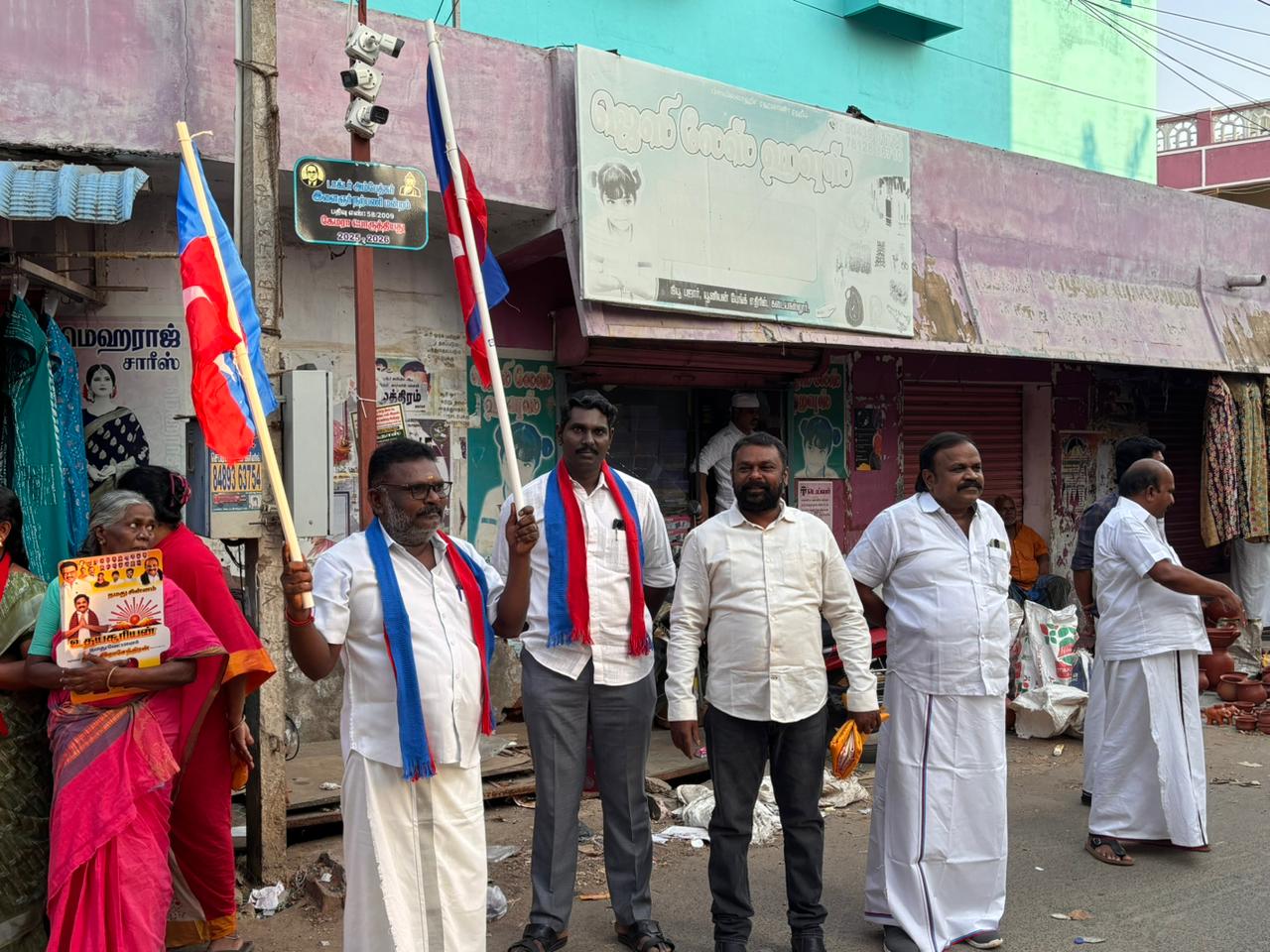 18/04/2026 அன்று தென்காசி மாவட்டம், கடையநல்லூர் சட்டமன்ற தொகுதியின் திமுக தலைமையிலான,மதச்சார்பற்ற முற்போக்கு கூட்டணியின் வெற்றி வேட்பாளர் வழக்கறிஞர் தி. மு. ராஜேந்திரனுக்கு, கடையநல்லூர் நகர 17 வது வார்டு Dr.அம்பேத்கார் தெருவில், விடுதலை சிறுத்தை கட்சிகள் சார்பில் சிறப்பான வரவேற்பு அளிக்கப்பட்டு, விசிக நிர்வாகிகளுடன் உதயசூரியன் சின்னத்தில் வாக்களிக்குமாறு வாக்கு சேகரித்தனர்.