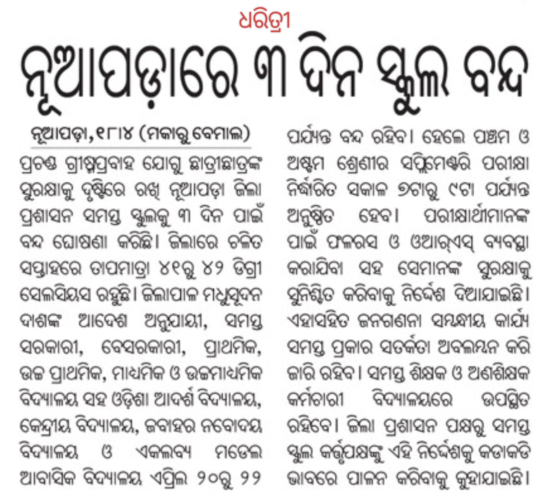ସର୍ବାଧିକ ପ୍ରସାରଣ ଖବର ଧରିତ୍ରୀ