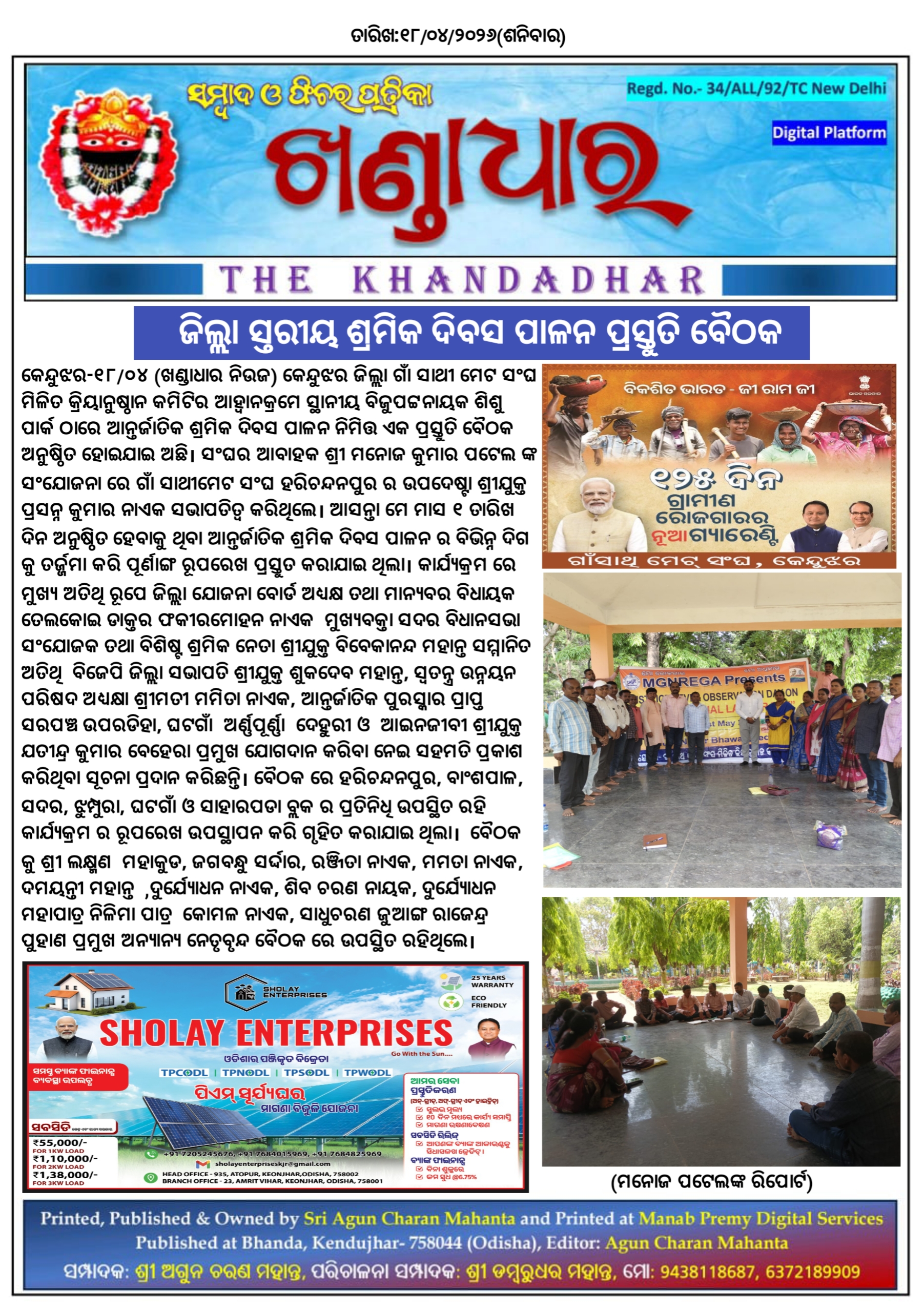 ଖଣ୍ଡାଧାର ନିଉଜ- ମନୋଜ ପଟେଲଙ୍କ ରିପୋର୍ଟ।