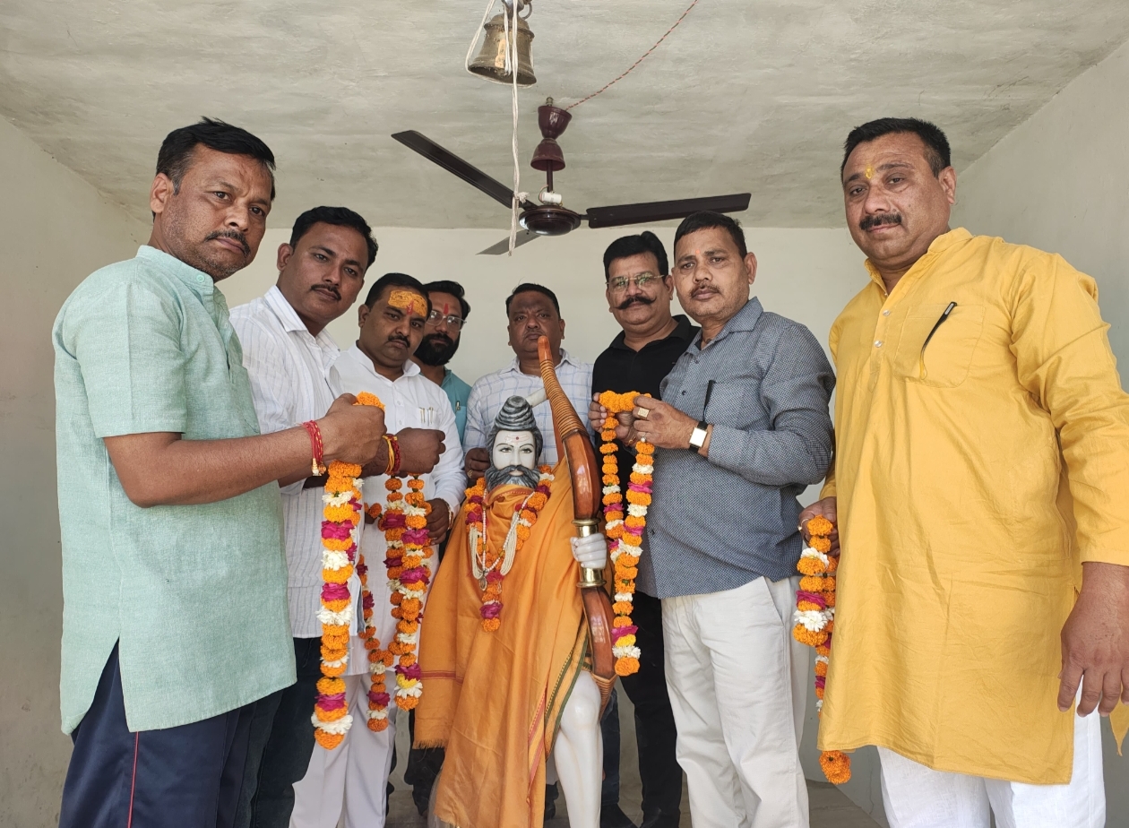 एटा - शहर के अरुणा नगर में परशुराम मंदिर पहुंचे ब्राह्मण समाज के लोग किया माल्यार्पण