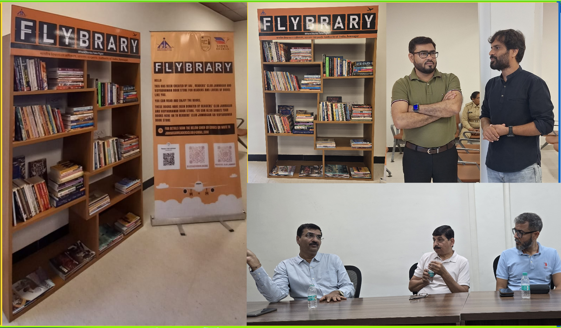 जामनगर एयरपोर्ट पर फ्लायब्रेरी में रीडर्स क्लब और सहयोगी संस्थाओकी तरफ से पुस्तकें भेट की गई