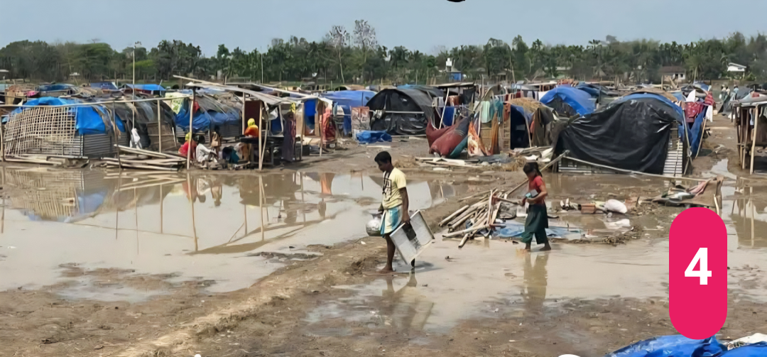 After being rendered homeless, these people live in temporary shelters under tarpaulins amidst extreme hardship. However, storms and rain have devastated even these fragile refuges. Their lives have become as uncertain as a tarpaulin sheet blown away by a storm.
