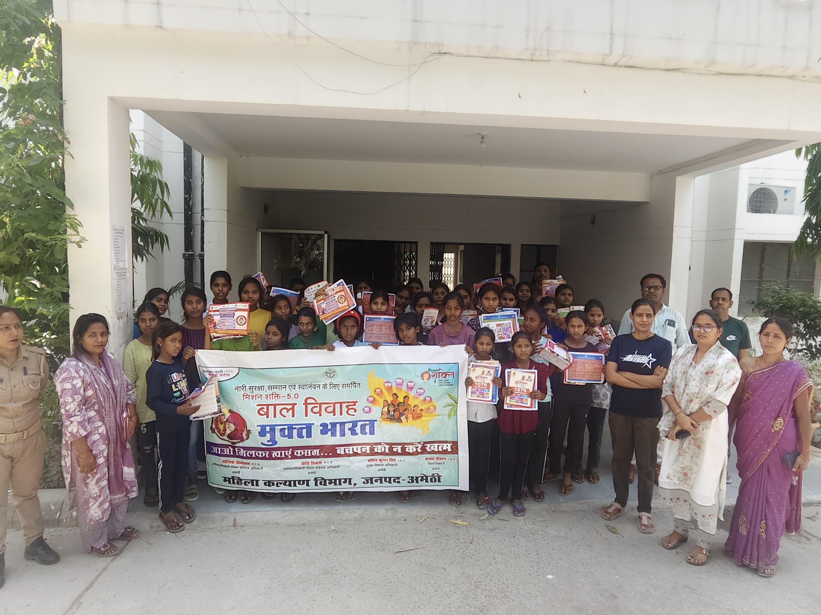_____________________________ आज दिनांक 19.04.2026 को जनपद अमेठी में उपजिलाधिकारी/जिला प्रोबेशन अधिकारी श्री नीतेश राज महोदय के निर्देशन के मार्गदर्शन में हब फॉर एंपावरमेंट ऑफ वूमेन एवं वन स्टॉप की टीम द्वारा पं0 दीन दयाल राजकीय आश्रम पद्धति बालिका इंटर कालेज असैदापुर गौरीगंज में अक्षय तृतीया के अवसर पर ज्यादा बाल विवाह होने की संभावना को खत्म करने के लिए बाल विवाह के खिलाफ विशेष जागरूकता अभियान चलाया गया। इस कार्यक्रम में बाल विवाह को ना- बाल विवाह के दंड व अपराध बताते हुए जागरूक किया गया और कहीं भी विवाह की जानकारी मिलने पर 1098 नंबर डायल करने की कहा गया तथा बाल विवाह न होने देने और इसकी जानकारी मिलने पर टोल फ्री नंबर में सूचना देने की शपथ दिलाई गई। साथ ही साथ महिला कल्याण विभाग की समस्त जनकल्याणकारी योजनाओं जैसे मुख्यमंत्री कन्या सुमंगला योजना, मुख्यमंत्री बाल सेवा योजना ,स्पॉन्सरशिप योजना निराश्रित महिला पेंशन योजना, टोल फ्री नंबर आदि की जानकारी दी गई। अभियान में हब फॉर एंपावरमेंट ऑफ़ वूमेन की टीम से डीएमसी ऋषि कुमार,जेंडर स्पेशलिस्ट राकेश कुमार यादव , वन स्टॉप सेन्टर स्टॉप केशवर्कर ममता यादव सहित अन्य लोग उपस्थिति थे।