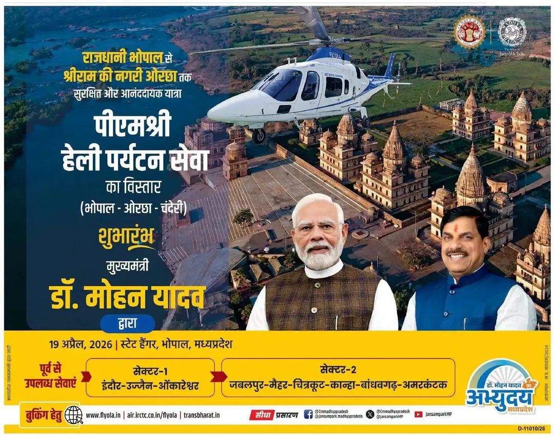 🚁राजधानी भोपाल से श्रीराम की नगरी ओरछा तक
