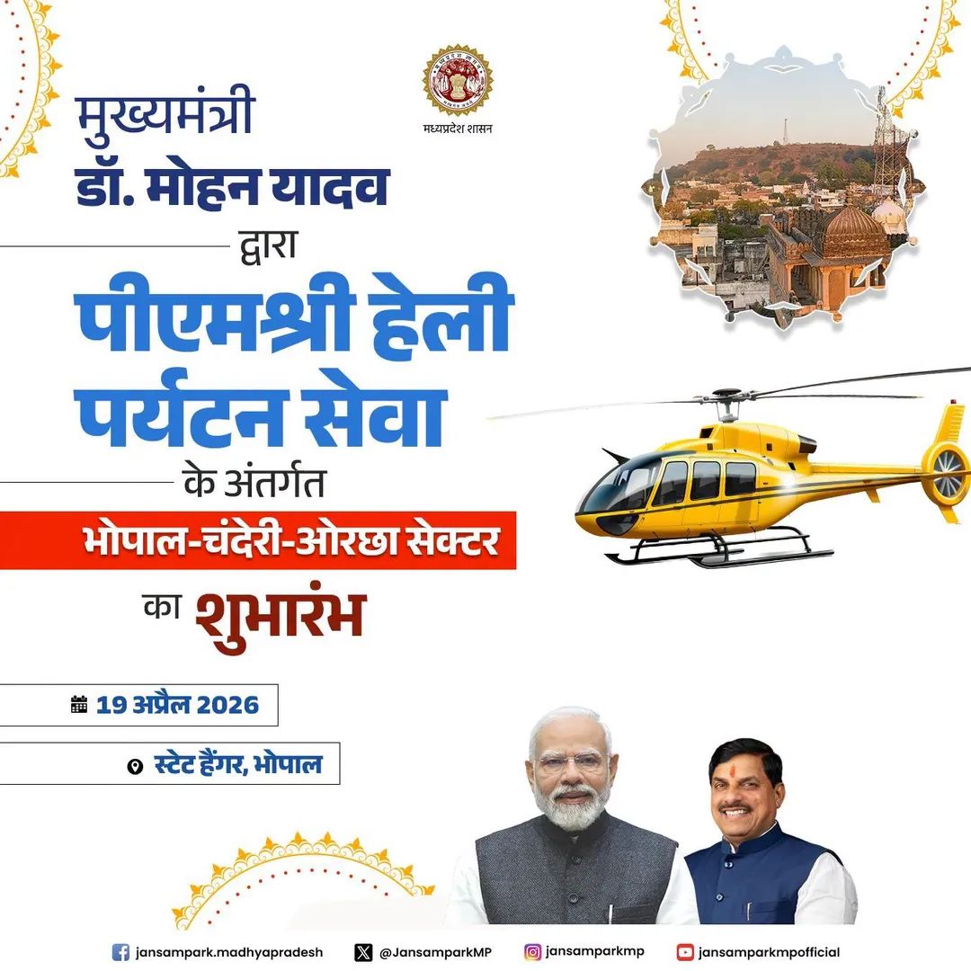 पीएमश्री हेली पर्यटन सेवा का विस्तार,... भोपाल से ओरछा तक की यात्रा अब और भी सुविधाजनक