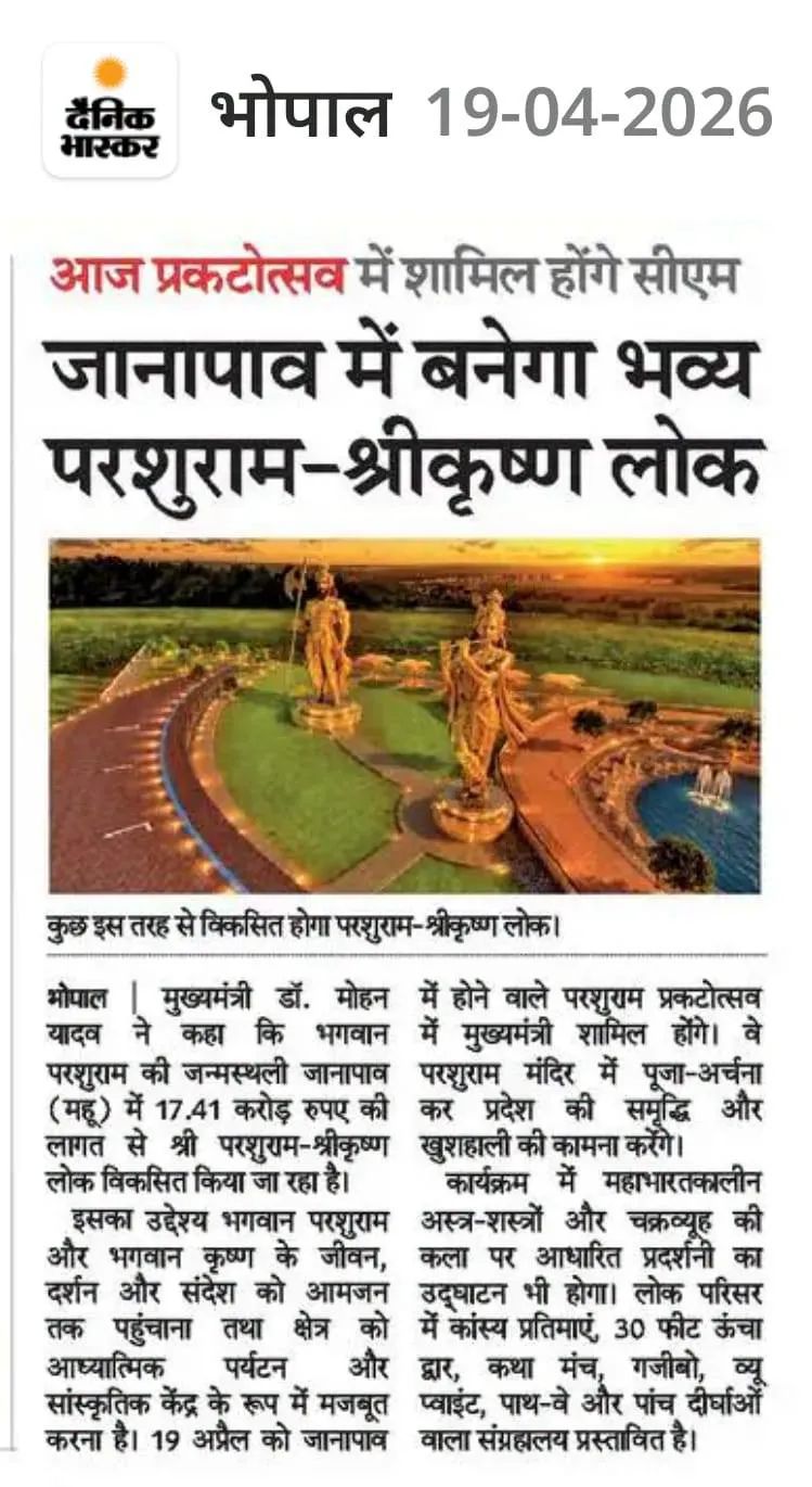 जानापाव में बनेगा भव्य श्री परशुराम - श्रीकृष्ण लोक