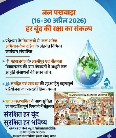 उत्तर प्रदेश जल पखवाड़ा 16-30 अप्रैल हर बूंद जल की रक्षा का संकल्प। कृष्ण कुमार पाठक खबरहलचल न्यूज/aimamedia