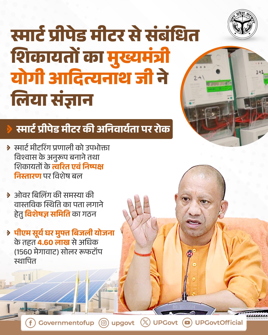 लखनऊ। योगी आदित्यनाथ ने प्रदेश में स्मार्ट मीटरिंग व्यवस्था को लेकर आ रही उपभोक्ताओं की शिकायतों पर त्वरित संज्ञान लिया है। मुख्यमंत्री ने स्मार्ट प्रीपेड मीटर की अनिवार्यता पर फिलहाल रोक लगाने का निर्णय लिया है, जिससे आम जनता को बड़ी राहत मिली है।