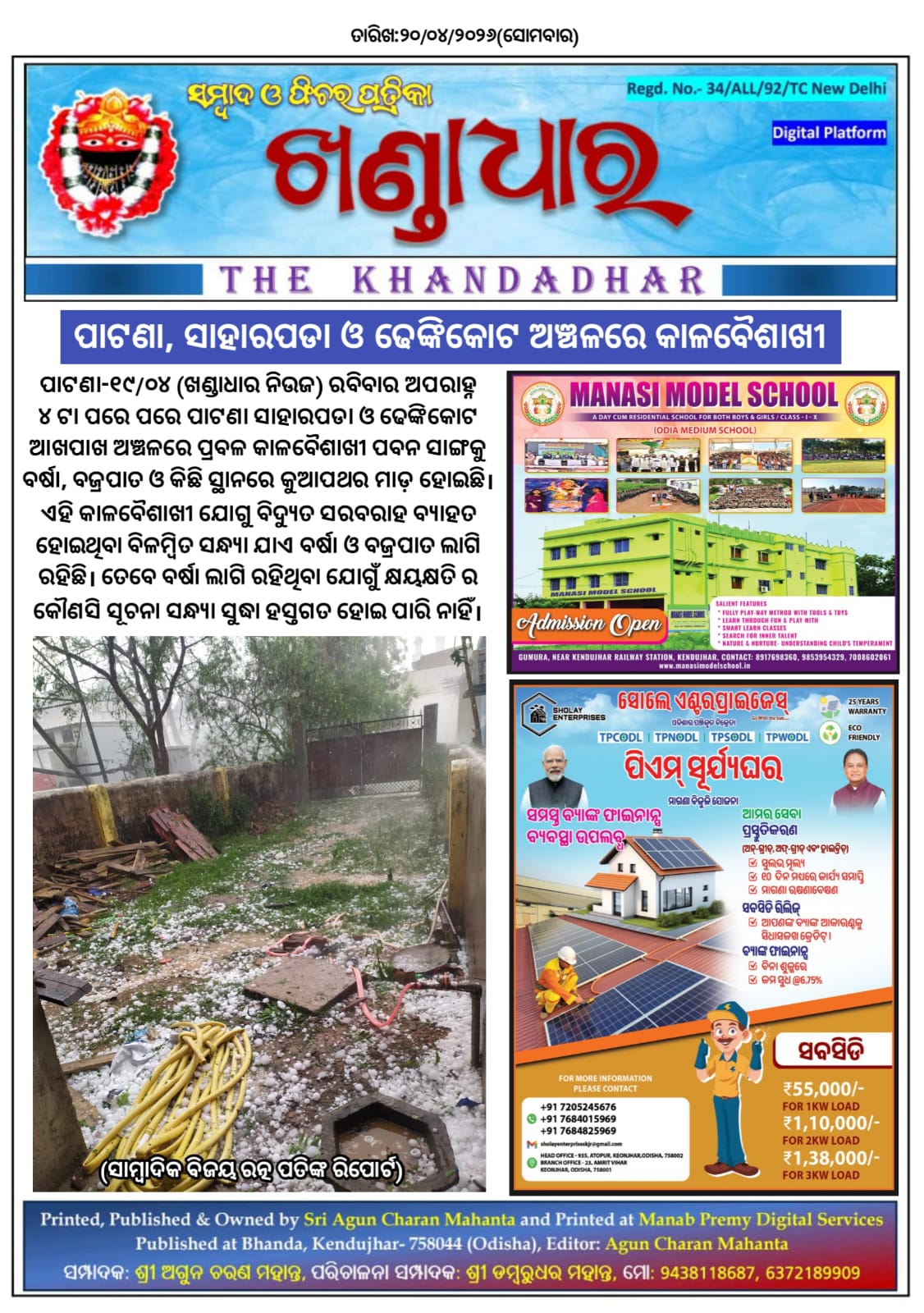 ଖଣ୍ଡାଧାର ନିଉଜ- ସାମ୍ବାଦିକ ବିଜୟ ରତ୍ନ ପତିଙ୍କ ରିପୋର୍ଟ।
