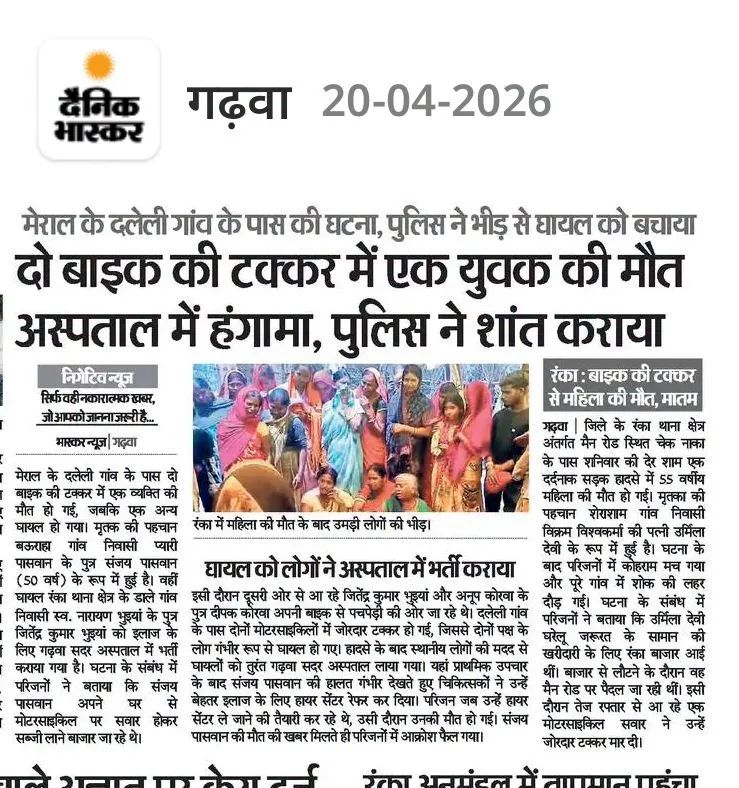 ​इसी बीच, जिले के रंका थाना क्षेत्र से भी एक अन्य दुखद खबर आई, जहां मेन रोड स्थित चेक नाका के पास एक तेज रफ्तार मोटरसाइकिल ने पैदल जा रही 55 वर्षीय उर्मिला देवी को टक्कर मार दी। इस हादसे में महिला की मौके पर ही मौत हो गई। वह घरेलू सामान की खरीदारी कर बाजार से लौट रही थीं। इस घटना के बाद मृतक के गांव शेराशाम में शोक की लहर है।
