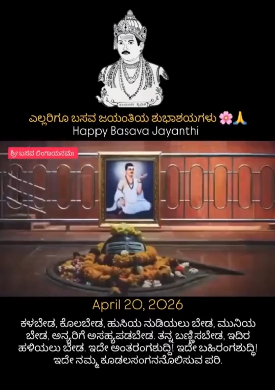 ಮಹಾಯೋಗಿ ಬಸವಣ್ಣನಿಗೆ ನಮನ ಬೆಳಗಾವಿ, ಏಪ್ರಿಲ್ 2೦ 2026: ಎಲ್ಲರಿಗೂ ಬಸವ ಜಯಂತಿಯ ಶುಭಾಶಯಗಳು