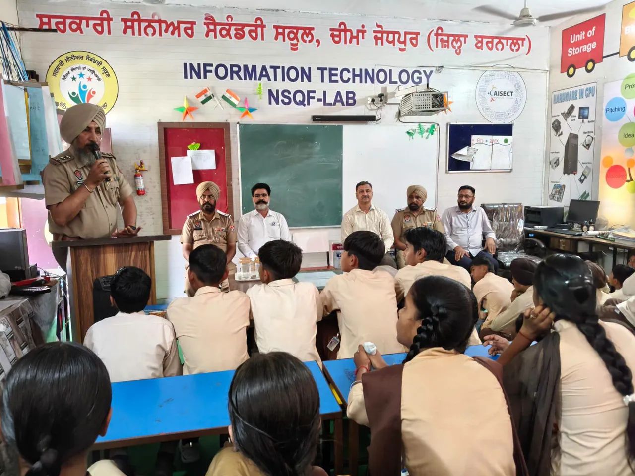 ਅੱਜ ਪੀ.ਐੱਮ. ਸ਼੍ਰੀ ਸਰਕਾਰੀ ਸੀਨੀਅਰ ਸੈਕੰਡਰੀ ਸਕੂਲ ਚੀਮਾ ਜੋਧਪੁਰ, ਜ਼ਿਲ੍ਹਾ ਬਰਨਾਲਾ ਵਿੱਚ ਭਾਰਤ ਸਰਕਾਰ ਅਤੇ ਪੰਜਾਬ ਸਰਕਾਰ ਦੀ ਸਟੂਡੈਂਟ ਪੁਲਿਸ ਕੈਡਿਟ ਸਕੀਮ ਅਧੀਨ ਵਿਦਿਆਰਥੀਆਂ ਵਿੱਚ ਟ੍ਰੈਫਿਕ ਨਿਯਮਾਂ ਪ੍ਰਤੀ ਜਾਗਰੂਕਤਾ ਫੈਲਾਉਣ ਲਈ ਇੱਕ ਵਿਸ਼ੇਸ਼ ਸੈਮੀਨਾਰ ਦਾ ਆਯੋਜਨ ਕੀਤਾ ਗਿਆ। ਇਹ ਸੈਮੀਨਾਰ ਪੁਲਿਸ ਵਿਭਾਗ ਦੇ ਸਹਿਯੋਗ ਨਾਲ ਬਹੁਤ ਹੀ ਸੁਚੱਜੇ ਢੰਗ ਨਾਲ ਕਰਵਾਇਆ ਗਿਆ, ਜਿਸ ਵਿੱਚ ਵੱਡੀ ਗਿਣਤੀ ਵਿੱਚ ਵਿਦਿਆਰਥੀਆਂ ਨੇ ਭਾਗ ਲਿਆ। ਇਸ ਮੌਕੇ ‘ਤੇ ਜ਼ਿਲ੍ਹਾ ਟ੍ਰੈਫਿਕ ਇੰਚਾਰਜ ਸ਼੍ਰੀ ਸ਼ੇਰਵਿੰਦਰ ਸਿੰਘ ਆਪਣੇ ਸਹਿਯੋਗੀ ਅਧਿਕਾਰੀਆਂ ਏ.ਐਸ.ਆਈ. ਦੀਵਾਨ ਸਿੰਘ, ਏ.ਐਸ.ਆਈ. ਰਣਜੀਤ ਸਿੰਘ ਅਤੇ ਏ.ਐਸ.ਆਈ. ਗੁਰਚਰਨ ਸਿੰਘ ਸਮੇਤ ਮੁੱਖ ਮਹਿਮਾਨ ਅਤੇ ਮੁੱਖ ਵਕਤਾ ਵਜੋਂ ਸ਼ਾਮਲ ਹੋਏ। ਉਨ੍ਹਾਂ ਨੇ ਵਿਦਿਆਰਥੀਆਂ ਨੂੰ ਟ੍ਰੈਫਿਕ ਨਿਯਮਾਂ ਦੀ ਮਹੱਤਤਾ ਬਾਰੇ ਵਿਸਥਾਰ ਨਾਲ ਜਾਣਕਾਰੀ ਦਿੱਤੀ ਅਤੇ ਦਿਨ-ਪ੍ਰਤੀਦਿਨ ਜੀਵਨ ਵਿੱਚ ਇਨ੍ਹਾਂ ਨਿਯਮਾਂ ਦੀ ਪਾਲਣਾ ਕਰਨ ਦੀ ਲੋੜ ‘ਤੇ ਜ਼ੋਰ ਦਿੱਤਾ। ਉਨ੍ਹਾਂ ਨੇ ਹੈਲਮਟ ਪਹਿਨਣ, ਸੀਟ ਬੈਲਟ ਲਗਾਉਣ, ਨਸ਼ੇ ਵਿੱਚ ਡਰਾਈਵਿੰਗ ਤੋਂ ਬਚਣ, ਮੋਬਾਈਲ ਫੋਨ ਦੀ ਵਰਤੋਂ ਨਾ ਕਰਨ ਅਤੇ ਸੜਕ ਸੰਕੇਤਾਂ ਦੀ ਪਾਲਣਾ ਕਰਨ ਬਾਰੇ ਵਿਸ਼ੇਸ਼ ਤੌਰ ‘ਤੇ ਜਾਗਰੂਕ ਕੀਤਾ। ਉਨ੍ਹਾਂ ਨੇ ਇਹ ਵੀ ਦੱਸਿਆ ਕਿ ਟ੍ਰੈਫਿਕ ਨਿਯਮਾਂ ਦੀ ਉਲੰਘਣਾ ਕਰਨ ਨਾਲ ਨਾ ਸਿਰਫ਼ ਕਾਨੂੰਨੀ ਕਾਰਵਾਈ ਹੁੰਦੀ ਹੈ, ਸਗੋਂ ਇਹ ਜਾਨ ਲਈ ਵੀ ਖਤਰਾ ਬਣ ਸਕਦੀ ਹੈ। ਇਸ ਲਈ ਹਰ ਨਾਗਰਿਕ ਦਾ ਫਰਜ਼ ਹੈ ਕਿ ਉਹ ਆਪਣੇ ਅਤੇ ਹੋਰਨਾਂ ਦੀ ਸੁਰੱਖਿਆ ਲਈ ਟ੍ਰੈਫਿਕ ਨਿਯਮਾਂ ਦੀ ਪਾਲਣਾ ਕਰੇ। ਸਕੂਲ ਦੇ ਪ੍ਰਿੰਸੀਪਲ ਸ਼੍ਰੀ ਅਨਿਲ ਕੁਮਾਰ ਨੇ ਆਪਣੇ ਸੰਬੋਧਨ ਵਿੱਚ ਵਿਦਿਆਰਥੀਆਂ ਨੂੰ ਅਨੁਸ਼ਾਸਨ ਅਤੇ ਜ਼ਿੰਮੇਵਾਰੀ ਦੀ ਮਹੱਤਤਾ ਬਾਰੇ ਦੱਸਿਆ ਅਤੇ ਉਨ੍ਹਾਂ ਨੂੰ ਪ੍ਰੇਰਿਤ ਕੀਤਾ ਕਿ ਉਹ ਟ੍ਰੈਫਿਕ ਨਿਯਮਾਂ ਦੀ ਪਾਲਣਾ ਕਰਕੇ ਇੱਕ ਸੁਚੱਜੇ ਸਮਾਜ ਦੀ ਨਿਰਮਾਣ ਵਿੱਚ ਆਪਣਾ ਯੋਗਦਾਨ ਪਾਉਣ। ਉਨ੍ਹਾਂ ਨੇ ਕਿਹਾ ਕਿ ਅੱਜ ਦੇ ਵਿਦਿਆਰਥੀ ਕੱਲ੍ਹ ਦੇ ਜ਼ਿੰਮੇਵਾਰ ਨਾਗਰਿਕ ਹਨ, ਇਸ ਲਈ ਉਨ੍ਹਾਂ ਨੂੰ ਛੋਟੀ ਉਮਰ ਤੋਂ ਹੀ ਸਹੀ ਆਦਤਾਂ ਅਪਣਾਉਣੀਆਂ ਚਾਹੀਦੀਆਂ ਹਨ।