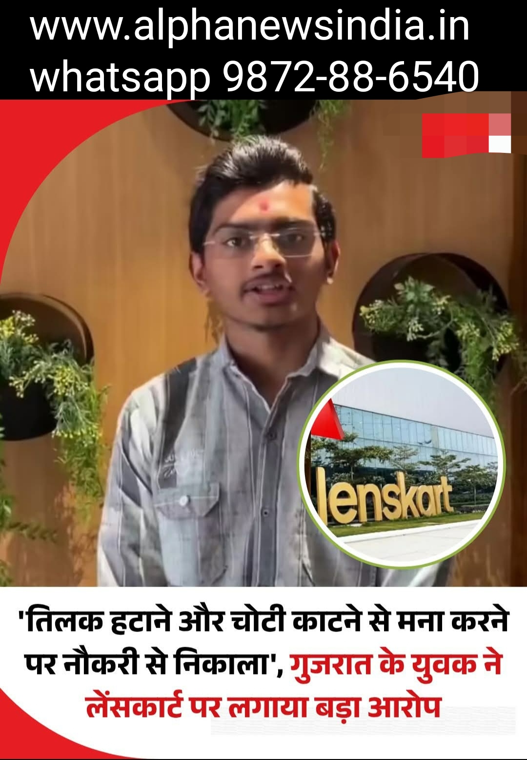 चंडीगढ़ सोमवार 20 अप्रैल 2026 अनिल शारदा हरीश शर्मा अश्वनी शर्मा प्रस्तुति --- आईवियर कंपनी लेंसकार्ट एक नए विवाद में घिर गई है। अब खुद को कंपनी का एक पूर्व कर्मचारी बताने वाले युवक ने दावा किया है कि धार्मिक प्रतीकों को हटाने से इनकार करने पर उसे नौकरी से निकाल दिया गया था। खुद को कंपनी का पूर्व कर्मचारी बताने वाले जील सोगसिया ने एक वीडियो जारी कर दावा किया कि उन्हें कंपनी ने अपनी शिखा काटने, ओम का टूट मिटाने और तिलक हटाने के लिए कहा था। जब उन्होंने ऐसा करने से मना किय, तो उन्हें नौकरी से निकाल दिया गया। यह आरोप ऐसे समय में सामने आया है जब कंपनी में ड्रेस कोड लेकर पहले से ही विवाद चल रहा है।