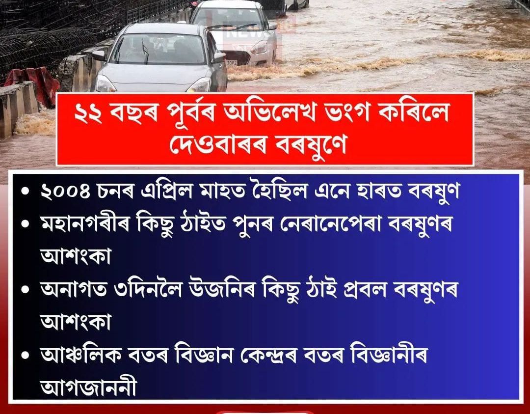 ২২ বছৰৰ পূৰ্বৰ অভিলেখ ভংগ কৰিলে যোৱা কালি গুৱাহাটী মহানগৰৰ বৰষুণজাকে।