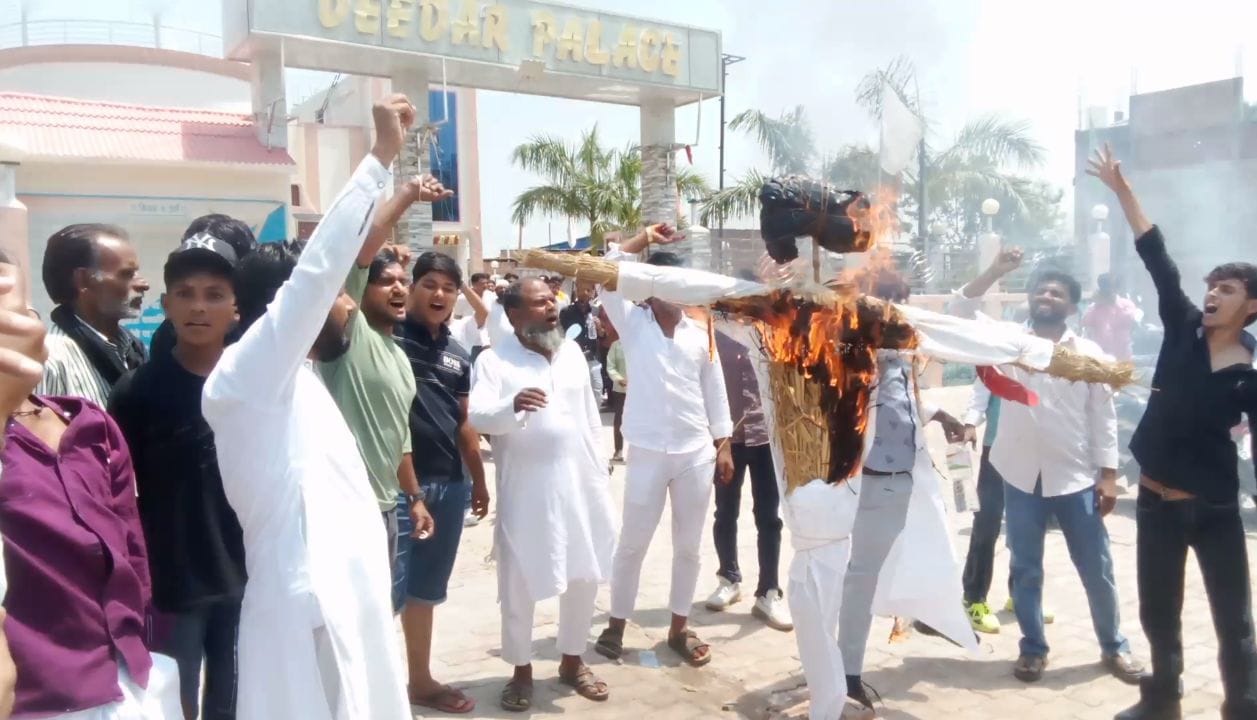 अखिलेश यादव के खिलाफ मुस्लिम समुदाय का प्रदर्शन, फूंका पुतला