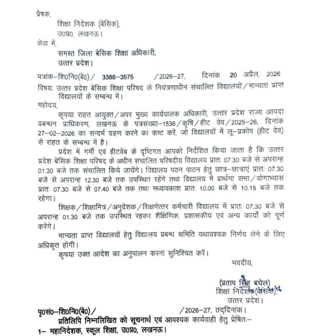 नई व्यवस्था के तहत अब सभी सरकारी स्कूल सुबह जल्दी खोले जाएंगे और दोपहर की तेज़ धूप से पहले ही छुट्टी कर दी जाएगी। इस फैसले का उद्देश्य छात्रों को लू और गर्मी से होने वाली बीमारियों से बचाना है।