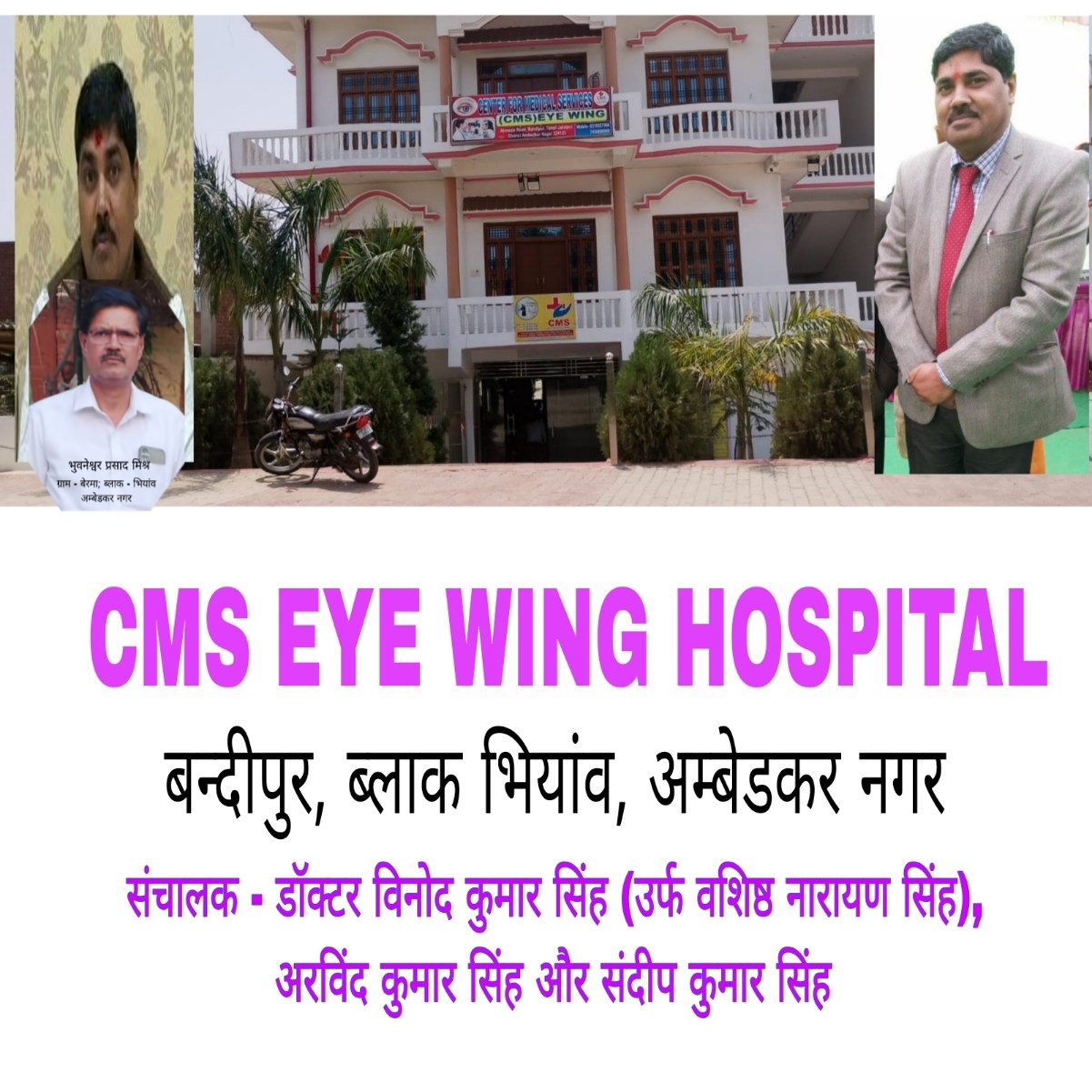 इस महान अभियान को भुवनेश्वर प्रसाद मिश्र (अस्पताल संरक्षक) के कुशल मार्गदर्शन और संरक्षण में यह अस्पताल सेवा के नए आयाम स्थापित कर रहा है। उनके अनुभव की छाया में ही पूरी टीम अटूट सेवा भाव के साथ कार्य कर रही है।”