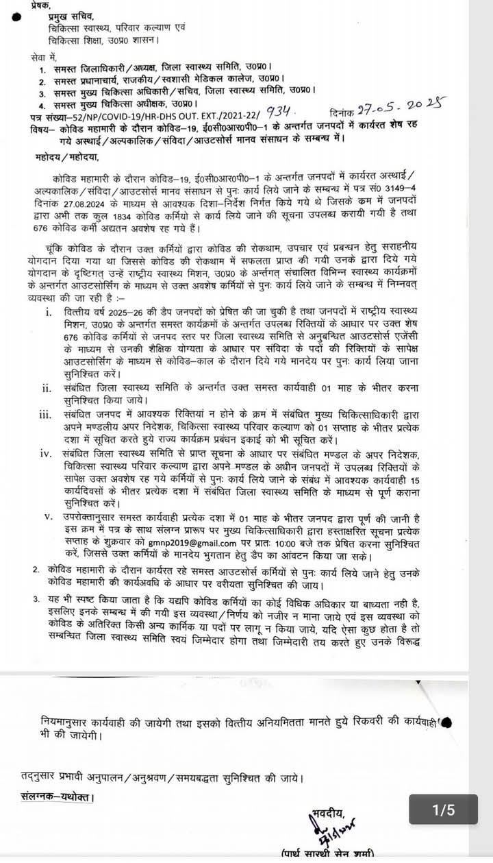 कोविट महामारी के दौरान कोविट -19 ई0सी0आर0पी0 1 अंतर्गत जनपदों में कार्यरत अस्थाई ,,,