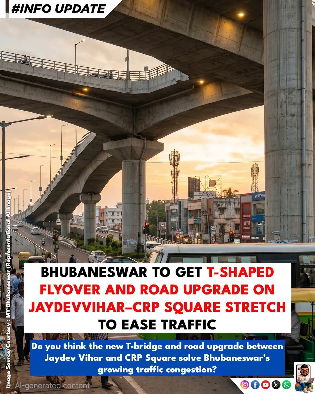 Bhubaneswar is set for a major infrastructure upgrade as the Odisha government plans to construct a T-shaped flyover and improve road connectivity between Jaydev Vihar and CRP Square. The project aims to reduce congestion and enhance traffic flow on one of the city’s busiest corridors.