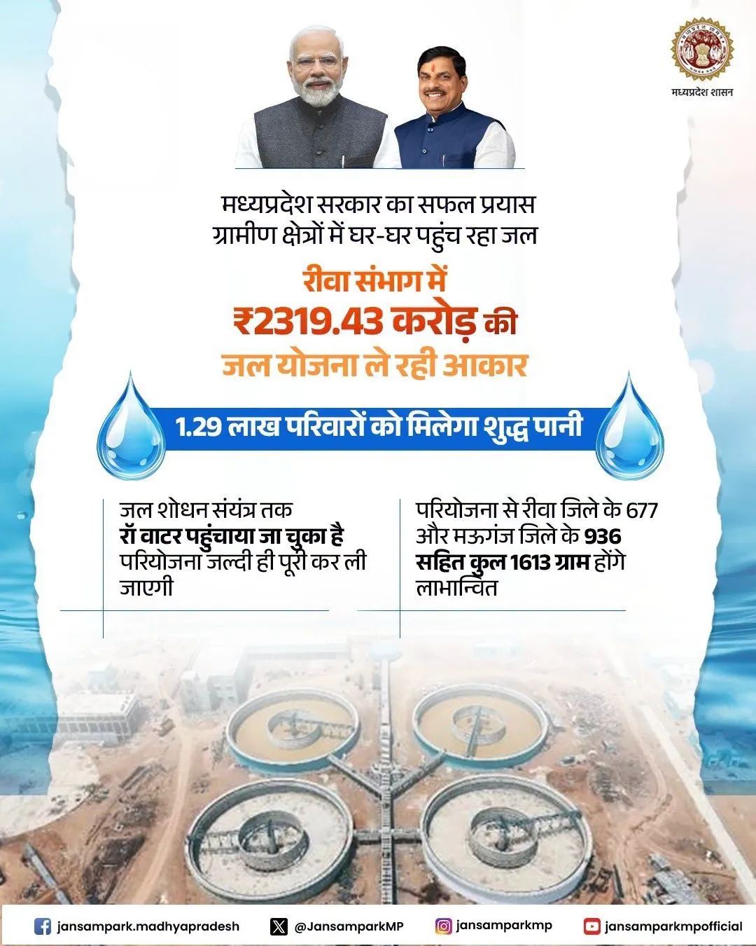 🚰रीवा संभाग में 2319.43 करोड़ की जल योजना ले रही आकार