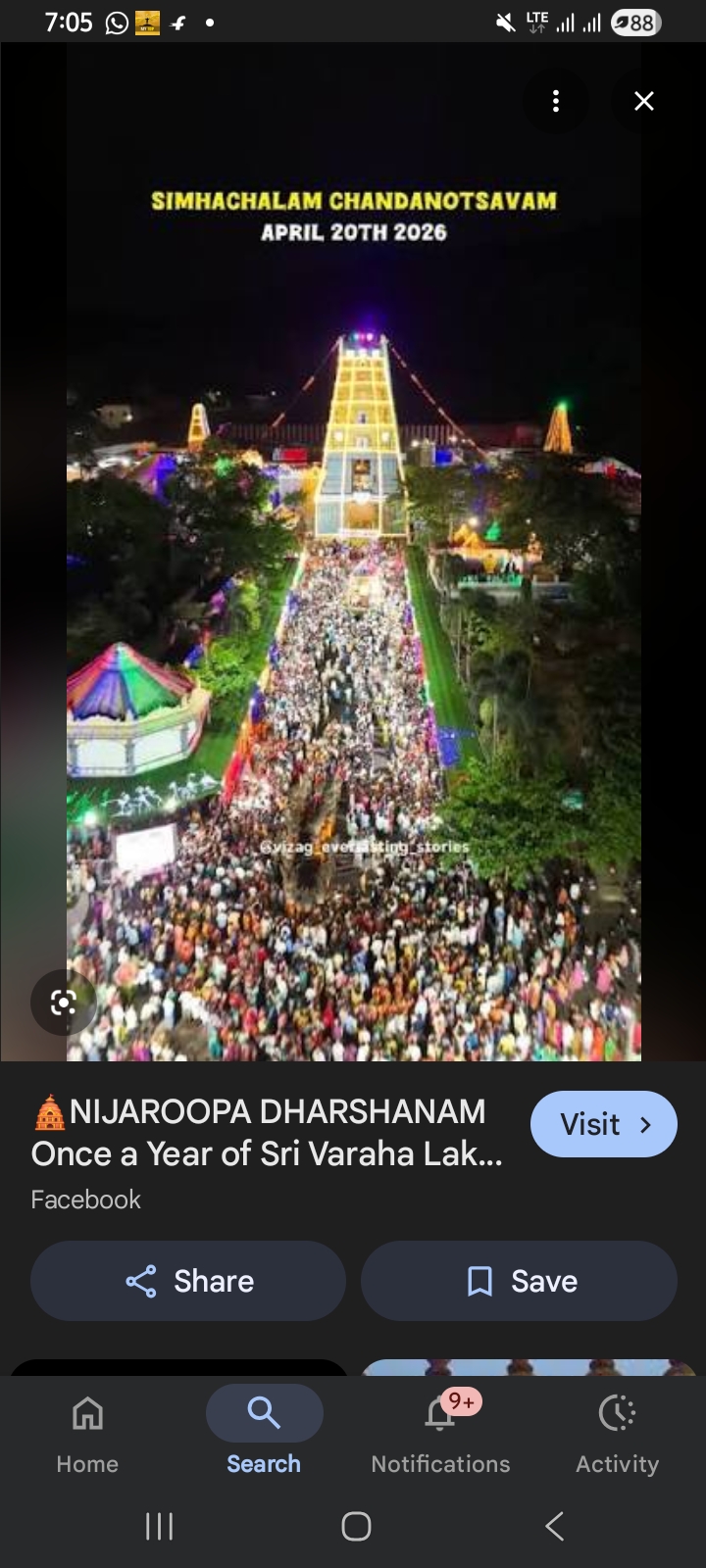 ఏప్రిల్ 20, 2026న సింహాచలంలో చందనోత్సవం ఘనంగా జరిగింది. ఏడాదికి ఒక్కసారి మాత్రమే లభించే శ్రీ వరాహ లక్ష్మీనరసింహ స్వామి వారి "నిజరూప దర్శనం" కోసం లక్షలాది మంది భక్తులు సింహగిరికి తరలివచ్చారు.