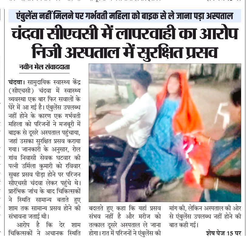एंबुलेंस नहीं मिलने पर गर्भवती महिला को बाइक से ले जाना पड़ा अस्पताल, चंदवा CHC की लापरवाही उजागर