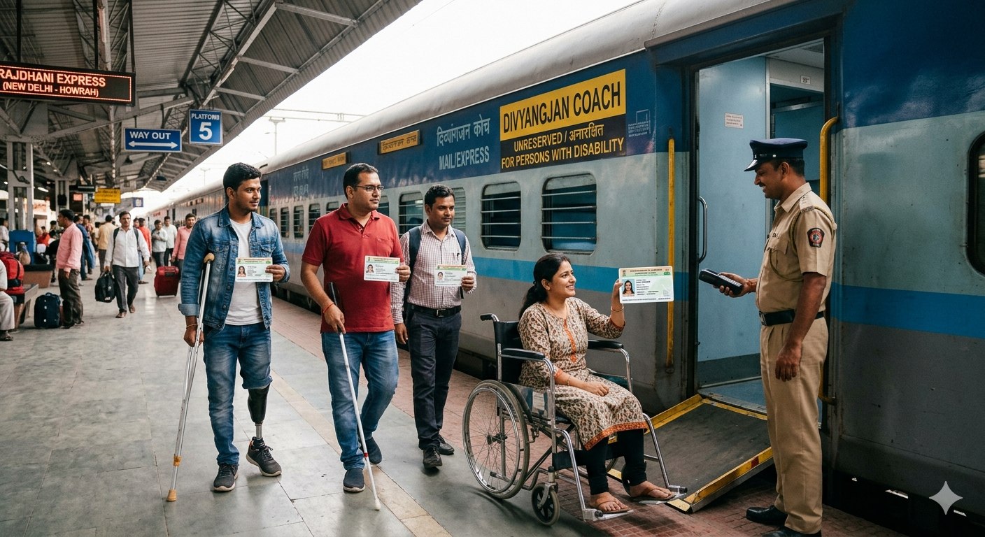 वैध यूडीआईडी कार्ड धारक दिव्यांगजन मेल/एक्सप्रेस ट्रेनों में अनारक्षित दिव्यांगजन कोच में यात्रा कर सकते हैं