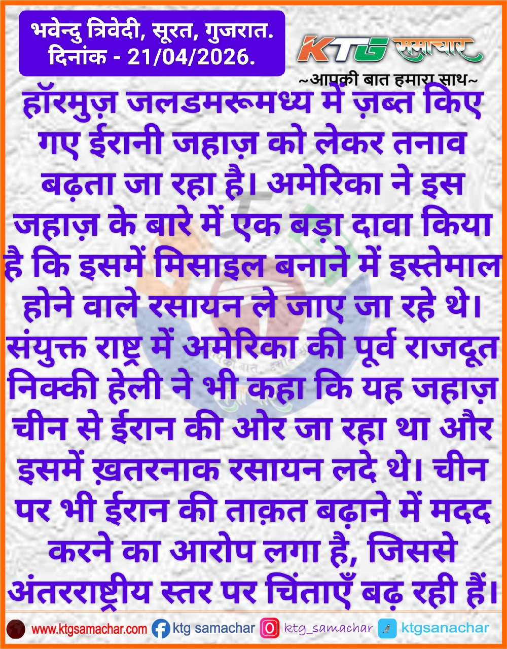 हॉरमुज़ जलडमरूमध्य में जप्त किए गए ईरानी जहाज को लेकर तनाव बढ़ता जा रहा है।