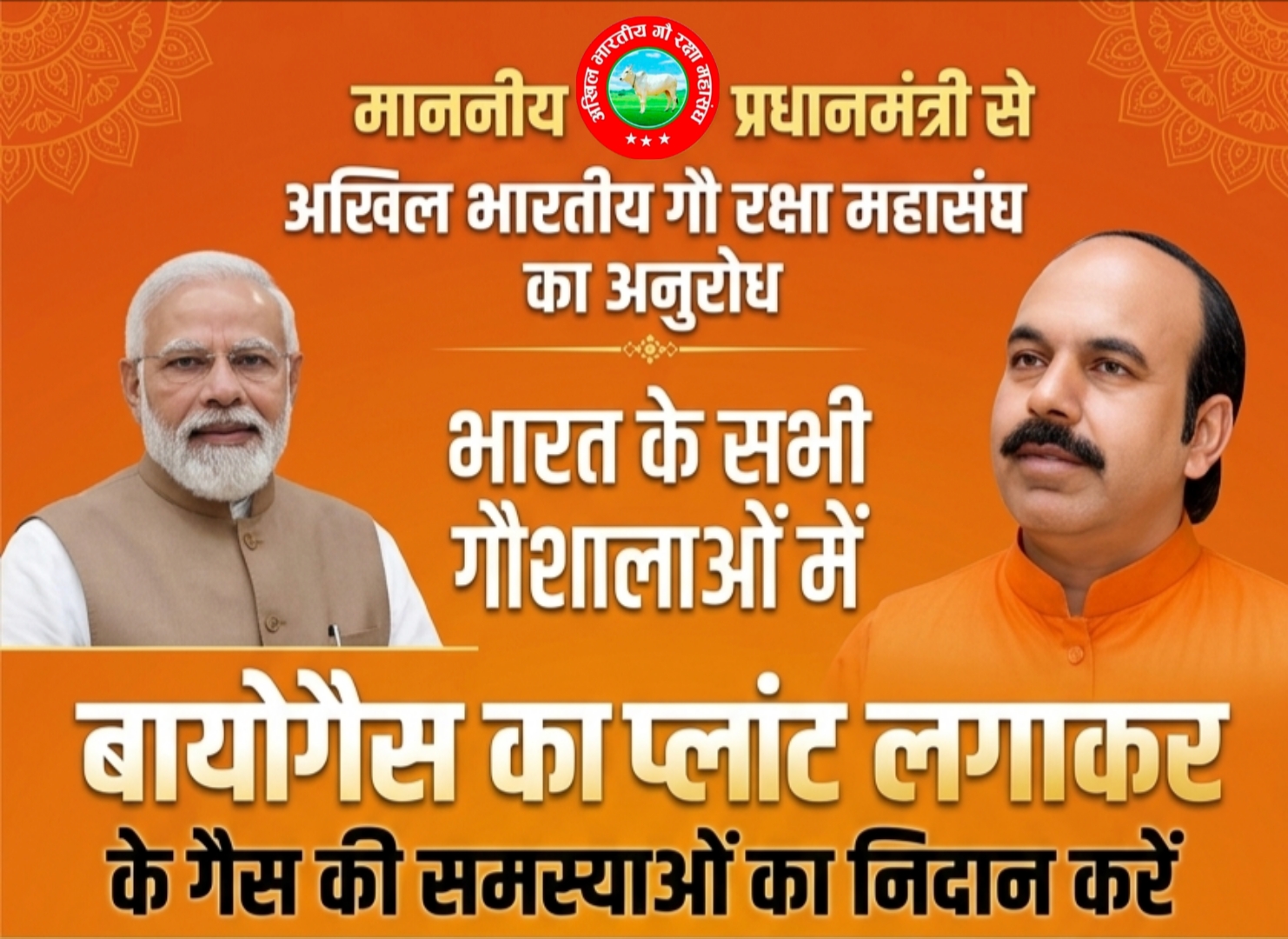 अखिल भारतीय गौ रक्षा महासंघ की बड़ी पहल: प्रधानमंत्री से देशभर की गौशालाओं में बायोगैस प्लांट लगाने की मांग,