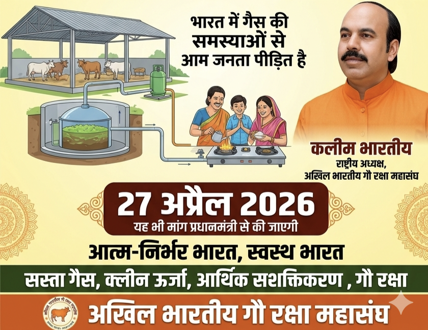अखिल भारतीय गौ रक्षा महासंघ ने देश में बढ़ती गैस की कीमतों और आम जनता की समस्याओं को देखते हुए एक क्रांतिकारी प्रस्ताव रखा है। महासंघ के राष्ट्रीय अध्यक्ष कलीम भारतीय ने माननीय प्रधानमंत्री श्री नरेंद्र मोदी जी से अनुरोध किया है कि भारत की सभी गौशालाओं को बायोगैस संयंत्रों (Biogas Plants) से जोड़ा जाए।