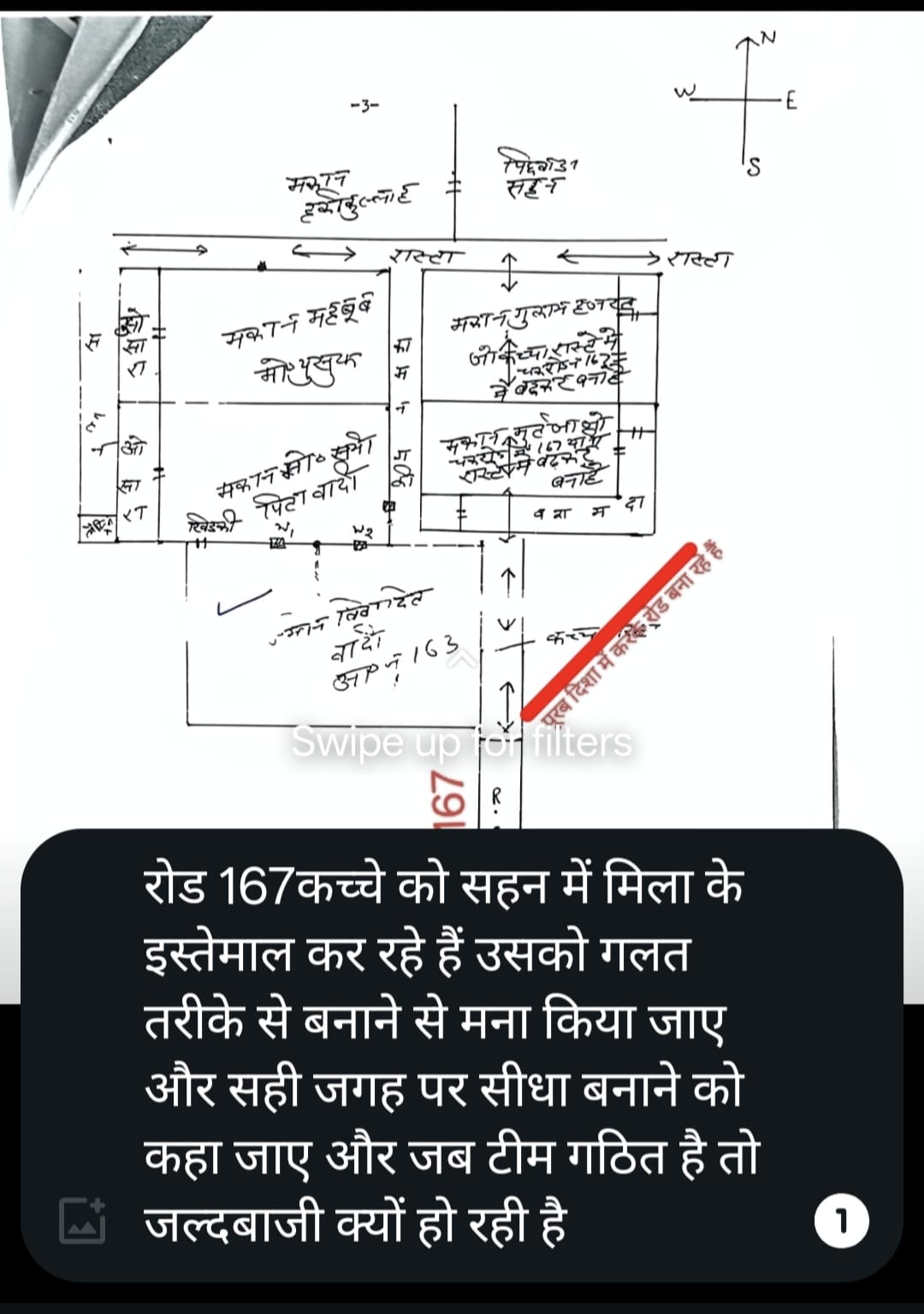 Chak Road No. 167 is straight on the map, but the village head deliberately made it crooked.