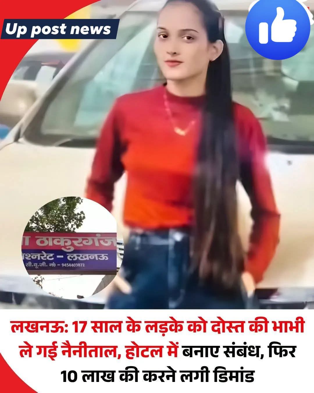 राजधानी लखनऊ में नौंवी में पढ़ने वाले नाबालिग छात्र को उसके दोस्‍त की भाभी बहला-फुसलाकर अपने साथ नैनीताल लेकर चली गई। वहां एक होटल में उसने छात्र से संबंध बनाए। अश्‍लील फोटो और वीडियो भी बना लिए। इधर, छात्र के गायब होने पर घरवाले परेशान हो गए। पुलिस के पास शिकायत की। पुलिस ने छात्र को नैनीताल से बरामद कर लिया। इस बीच, आरोपी महिला अश्‍लील वीडियो वायरल करने की धमकी देकर लड़के से लाख रुपये की डिमांड करने लगी। परेशान होकर छात्र ने घरवालों से पूरी बात बताई। पुलिस ने आरोपी महिला अतीका को अरेस्‍ट कर लिया है। यह पूरा मामला ठाकुरगंज की एक कॉलोनी का है। यहां रहने वाली महिला ने पुलिस में शिकायत की कि उसका 17 साल का बेटा कक्षा नौ का छात्र है। कैंपवेल रोड निवासी बेटे की दोस्‍त की भाभी अतीका ने 17 फरवरी को उसे मिलने के लिए बुलाया था। बेटा उससे मिलने गया तो वह उसको जबरन अपने साथ नैनीताल लेती गई। जब बेटा वापस नहीं लौटा तो घरवाले परेशान हो गए। उन्‍होंने पुलिस में गुमशुदगी की रिपोर्ट लिखाई। पुलिस ने बेटे को नैनीताल से बरामद कर लिया।
