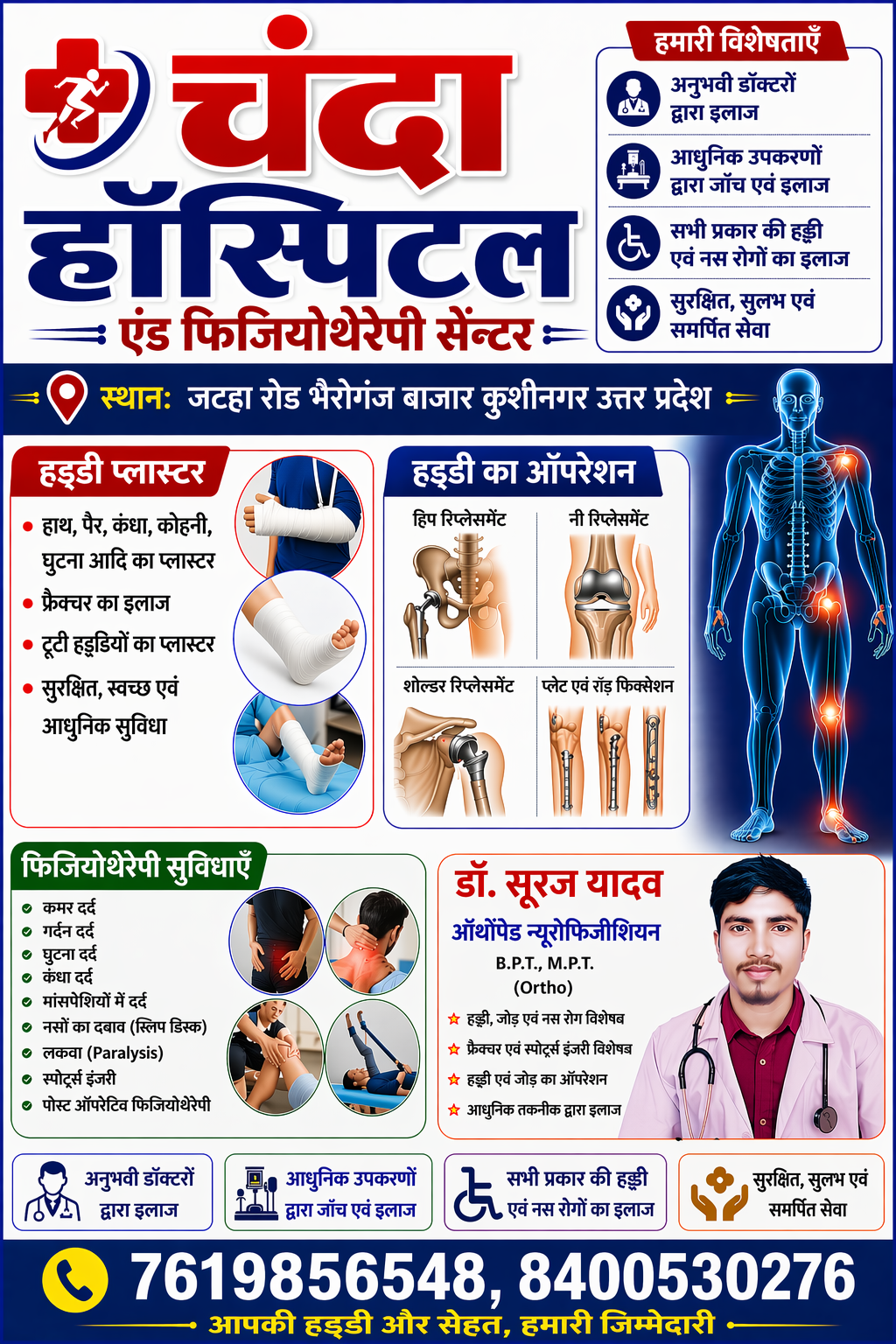 ЁЯПе рдЪрдВрджрд╛ рд╣реЙрд╕реНрдкрд┐рдЯрд▓ рдПрдВрдб рдлрд┐рдЬрд┐рдпреЛрдереЗрд░реЗрдкреА рд╕реЗрдВрдЯрд░ ЁЯУН рд╕реНрдерд╛рди: рдЬрдЯрд╣рд╛ рд░реЛрдб рднреИрд░реЛрдЧрдВрдЬ рдмрд╛рдЬрд╛рд░, рдХреБрд╢реАрдирдЧрд░,