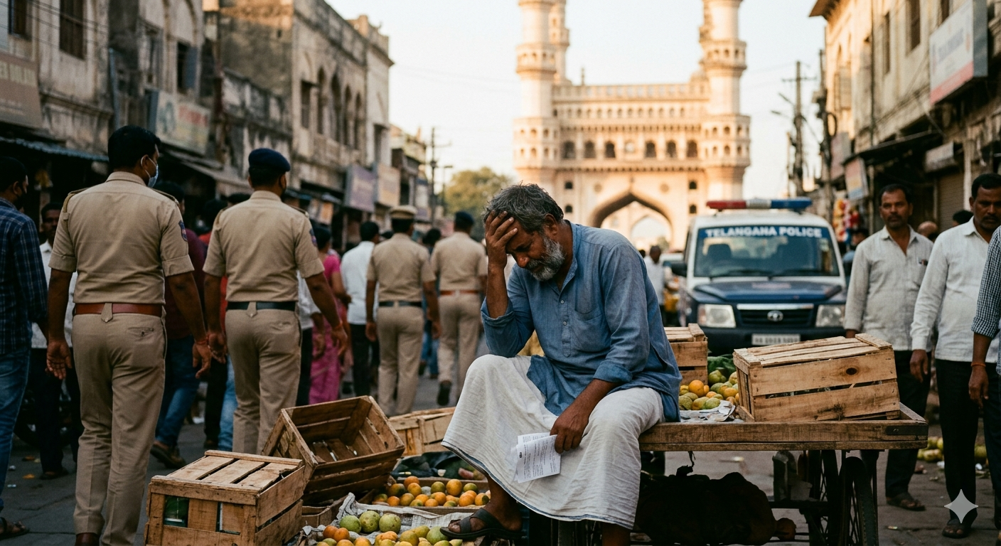 Hyderabad: Charminar, jo Hyderabad ki shaan aur pehchan hai, aaj wahan ke chote karobariyon aur street vendors ke liye ek imtehan ki jagah ban gaya hai. Pichle kuch dino se police aur municipal authorities ki sakht kaarvayi ne saikdon gharon ka chulha thanda kar diya hai. Lekin masla sirf chalan aur saaman zabti tak mahdood nahi hai, iske peeche ek gehra samaji (social) bohran chupa hua hai.