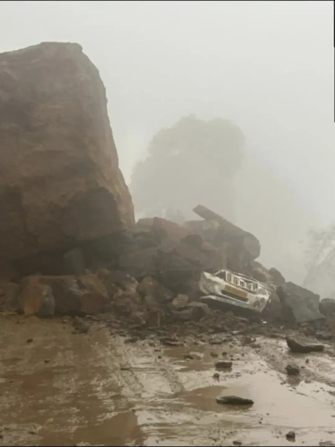 The incident took place at around 5 PM, when the vehicle was passing through the area and was suddenly hit by the landslide.