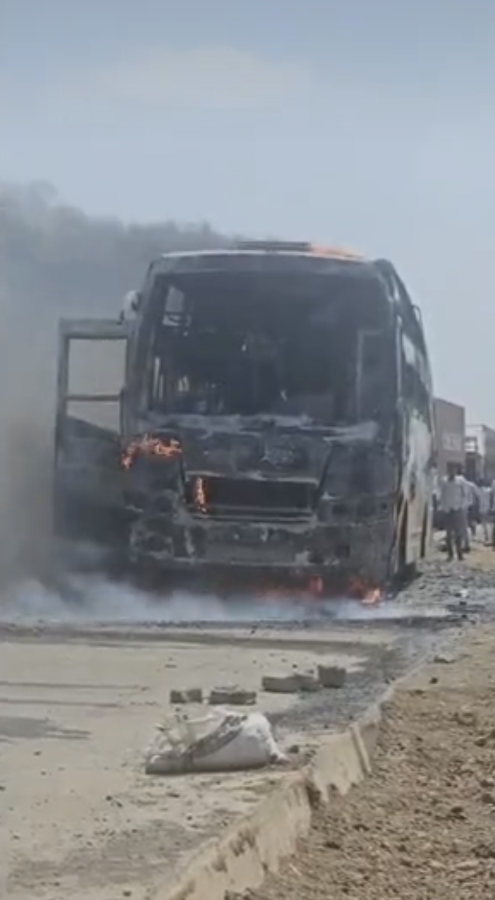आग इतनी तेजी से फैली कि कुछ ही देर में पूरी बस जलकर खाक हो गई।