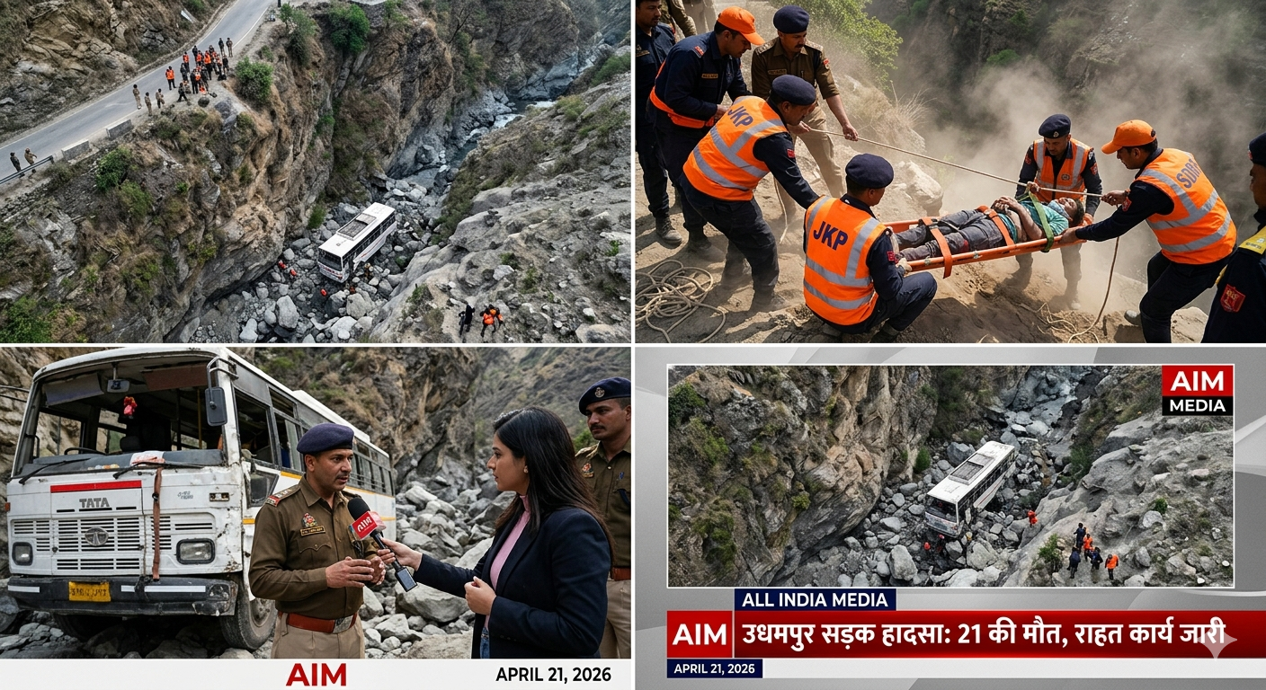 जम्मू-कश्मीर के उधमपुर जिले से इस वक्त की सबसे बड़ी और दुखद खबर सामने आ रही है। यहाँ एक यात्रियों से भरी बस अनियंत्रित होकर गहरी खाई में जा गिरी है। इस भीषण सड़क हादसे में अब तक 21 लोगों के मारे जाने की आधिकारिक पुष्टि हो चुकी है, जबकि 27 से ज्यादा लोग गंभीर रूप से घायल बताए जा रहे हैं।